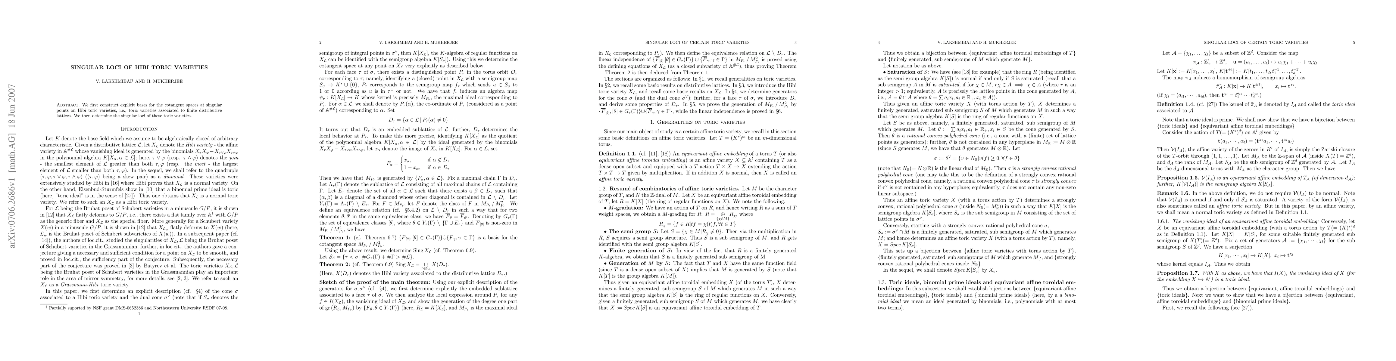 This paper constructs explicit bases for cotangent spaces at singular points of Hibi toric varieties and determines the singular loci of these varieties, which are associated with distributive lattices.
