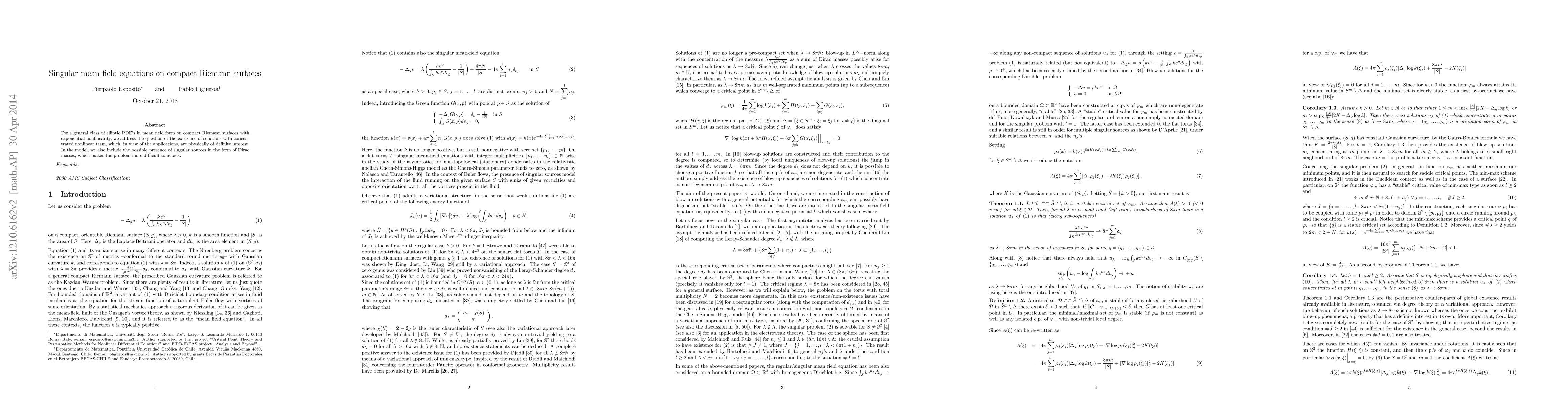 This paper investigates the existence of solutions to elliptic PDEs in mean field form on compact Riemann surfaces with exponential nonlinearity, focusing on concentrated nonlinear terms and the presence of singular sources like Dirac masses. The study addresses the challenges posed by these singularities.