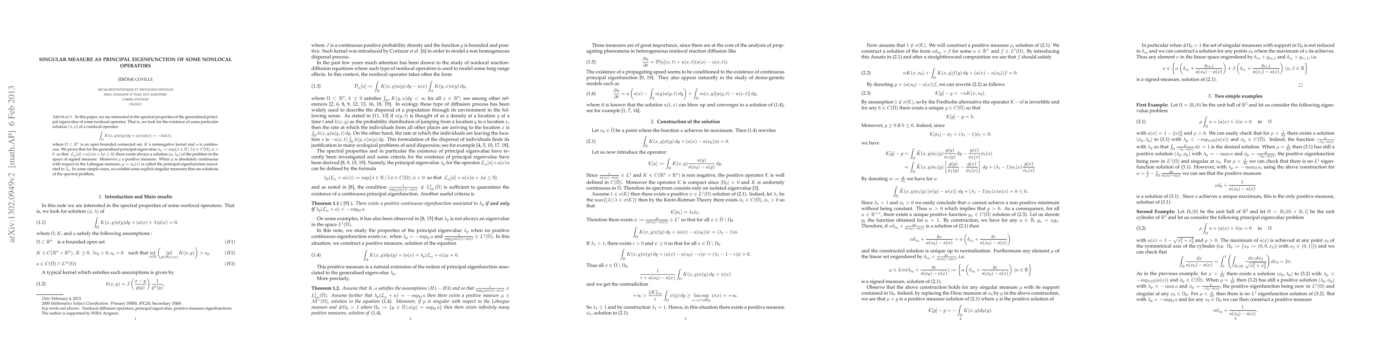 Researchers found that a singular measure exists as the principal eigenfunction of some nonlocal operators, providing insight into spectral properties.