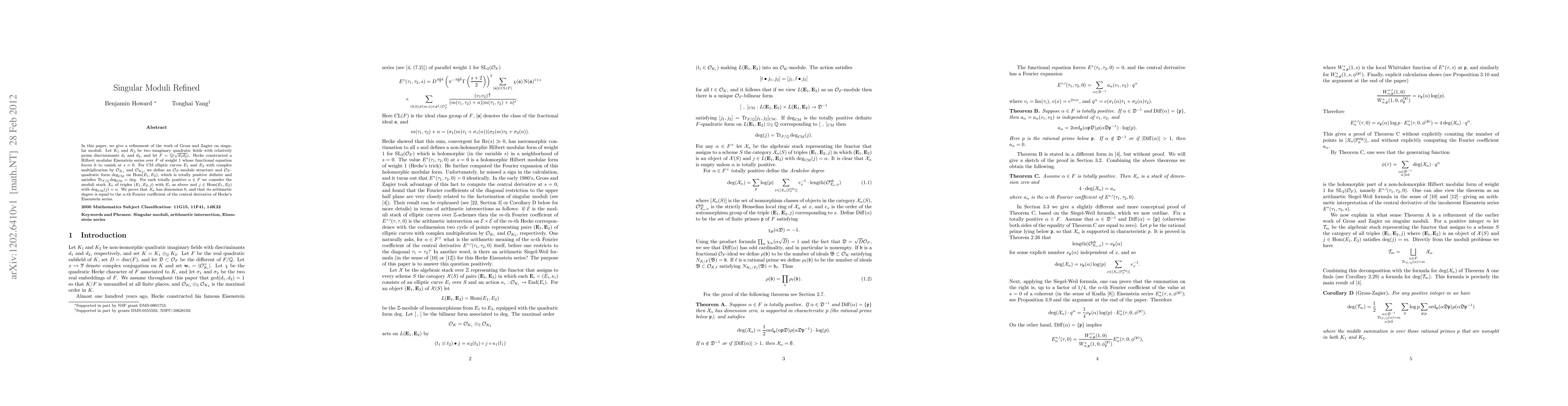 Summary: This paper refines Gross and Zagier's results on the prime factorization of singular moduli, providing deeper insights into the structure and properties of these special values in number theory. The research contributes to the understanding of elliptic curves and their associated L-functions.