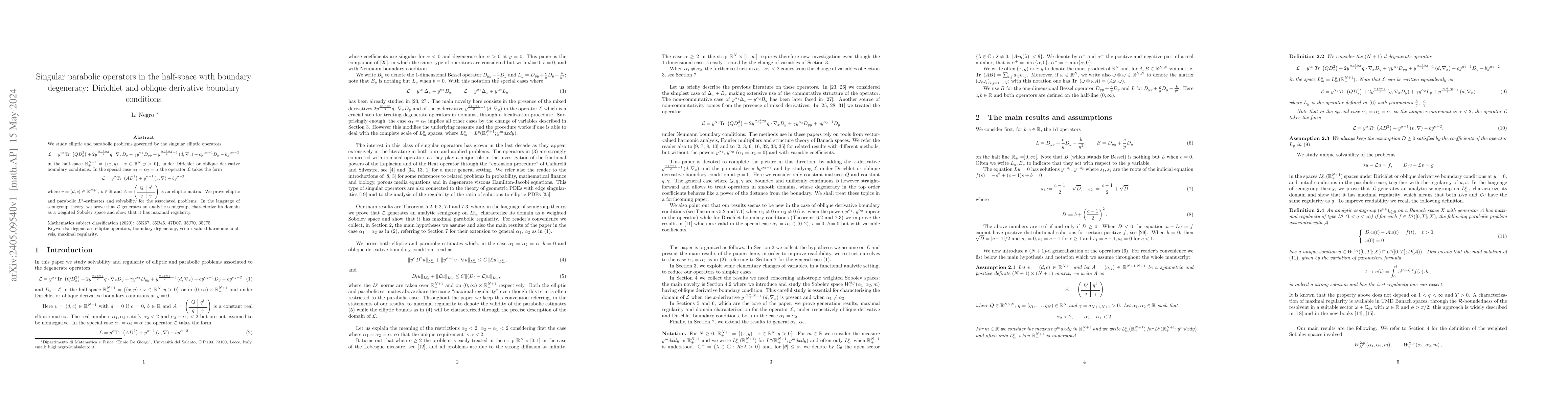 This paper studies elliptic and parabolic problems in the half-space with singular operators under Dirichlet or oblique derivative boundary conditions. It proves $L^p$-estimates and solvability, and demonstrates that the operator generates an analytic semigroup with maximal regularity in a weighted Sobolev space.