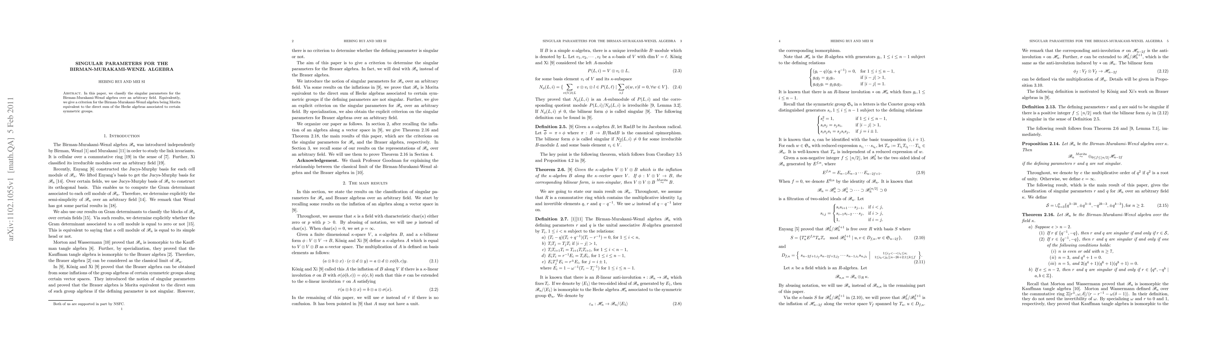 This paper classifies singular parameters for the Birman-Murakami-Wenzl algebra over any field, providing a criterion for its Morita equivalence to the direct sum of Hecke algebras linked to specific symmetric groups.