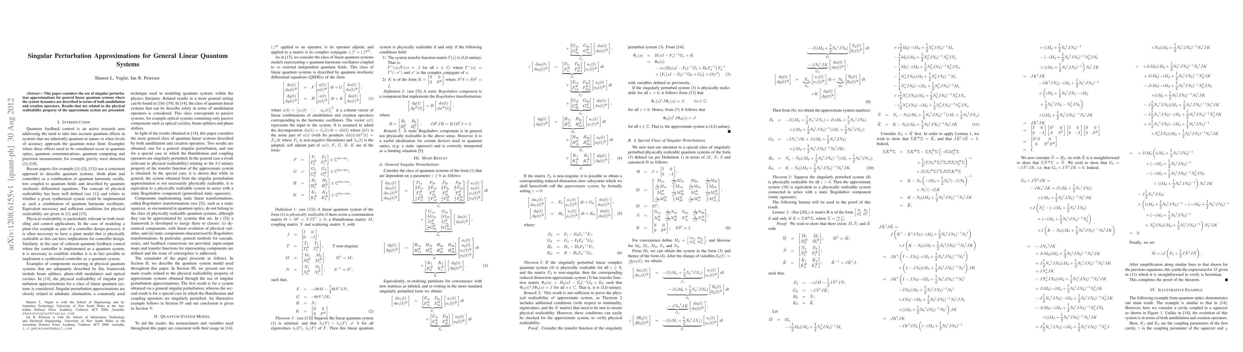 This paper explores singular perturbation approximations for general linear quantum systems, focusing on the dynamics described by annihilation and creation operators, and discusses the physical realizability of the resulting approximate systems.