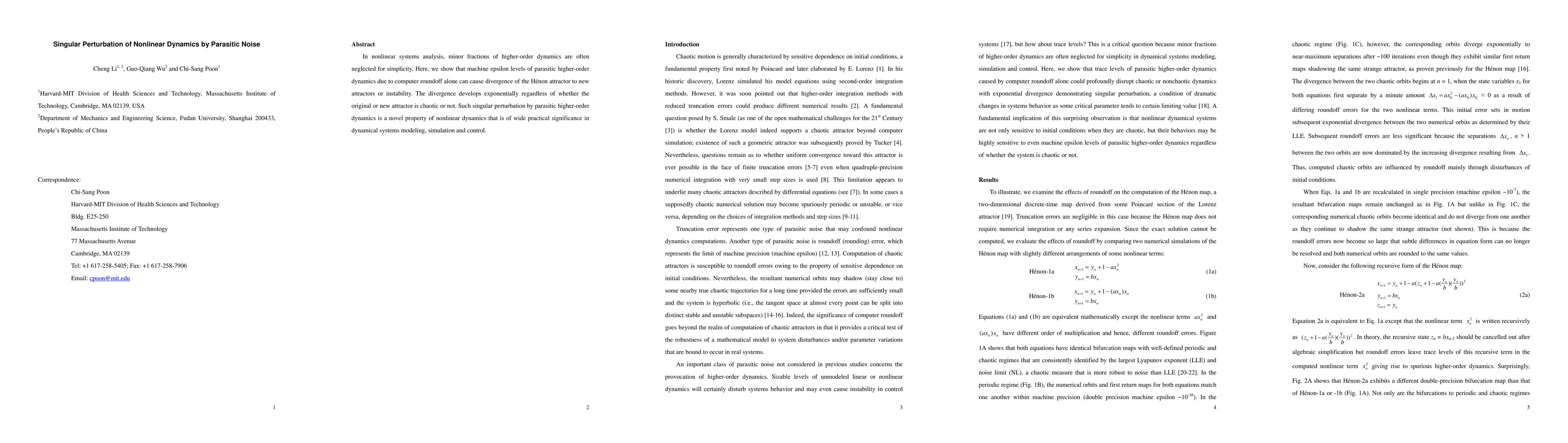 Minor computer roundoff errors can cause nonlinear systems to diverge into new attractors or become unstable, even in seemingly stable chaotic systems. This phenomenon, known as singular perturbation, has significant implications for dynamical systems modeling and control.