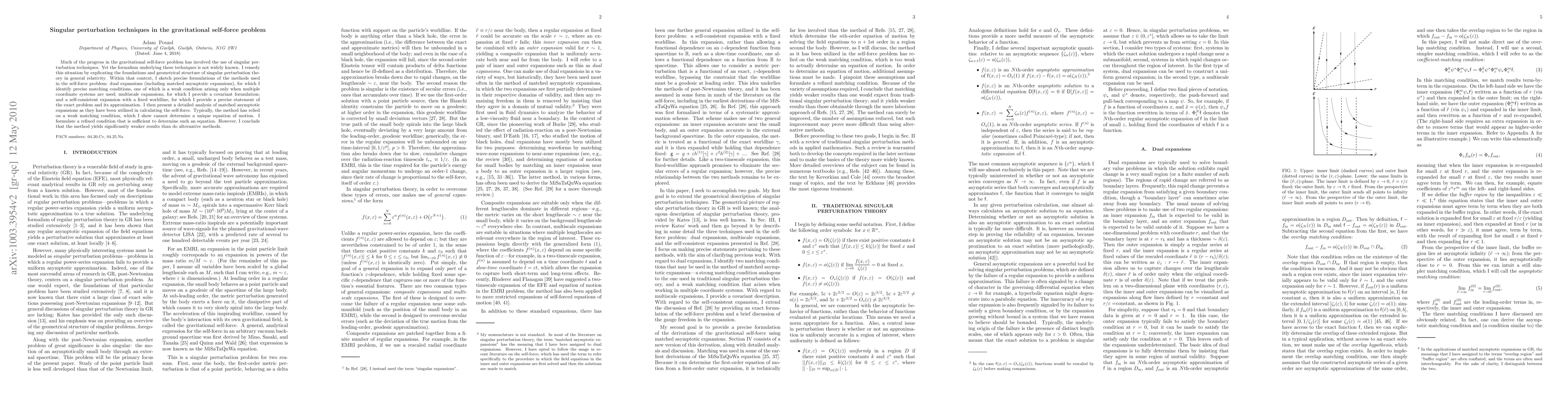 Researchers developed a detailed framework for singular perturbation techniques in general relativity's gravitational self-force problem, revealing that matched asymptotic expansions yield weaker results than alternative methods.
