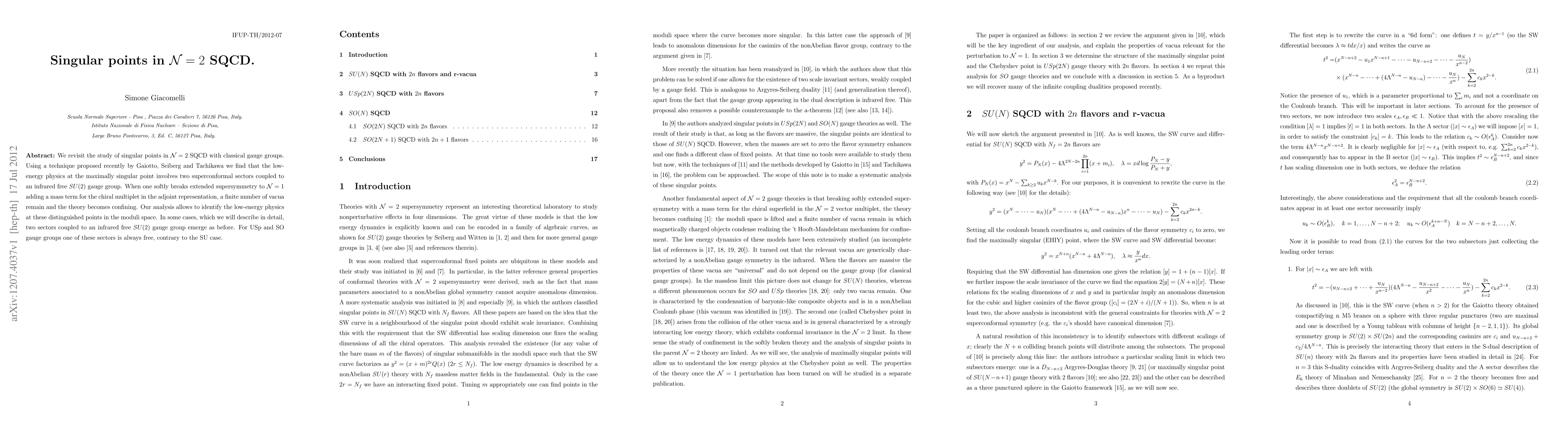 We revisit the study of singular points in N=2 SQCD with classical gauge groups. Using a technique proposed recently by Gaiotto, Seiberg and Tachikawa we find that the low-energy physics at the maximally singular point involves two superconformal sectors coupled to an infrared free SU(2) gauge group. When one softly breaks extended supersymmetry to N=1 adding a mass term for the chiral multiplet in the adjoint representation, a finite number of vacua remain and the theory becomes confining. Our analysis allows to identify the low-energy physics at these distinguished points in the moduli space. In some cases, which we will describe in detail, two sectors coupled to an infrared free SU(2) gauge group emerge as before. For USp and SO gauge groups one of these sectors is always free, contrary to the SU case.