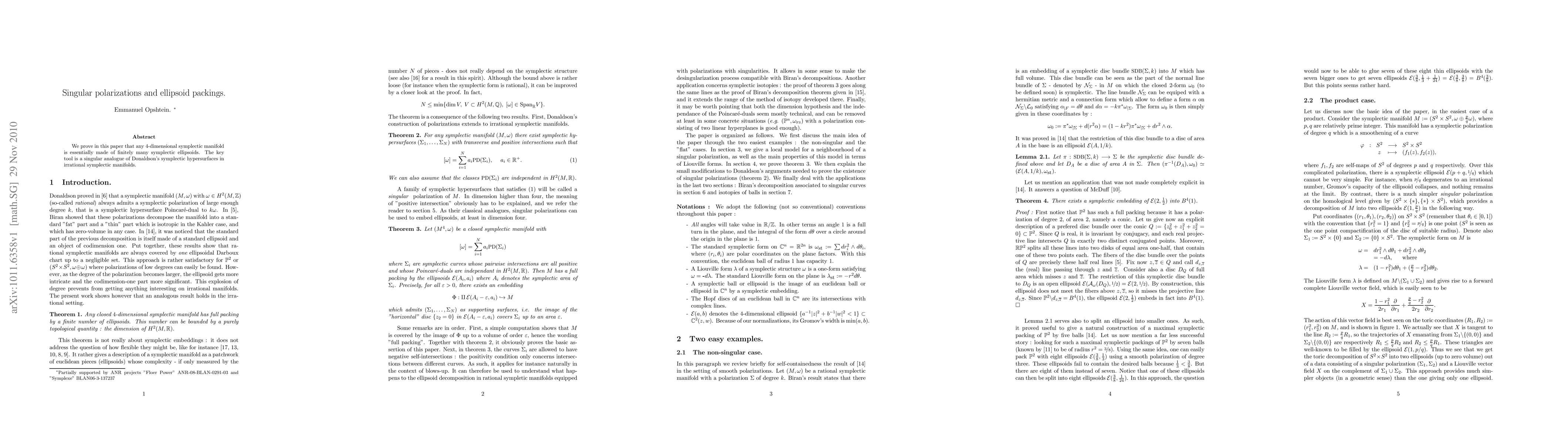 We prove in this paper that any 4-dimensional symplectic manifold is essentially made of finitely many symplectic ellipsoids. The key tool is a singular analogue of Donaldson's symplectic hypersurfaces in irrational symplectic manifolds.
