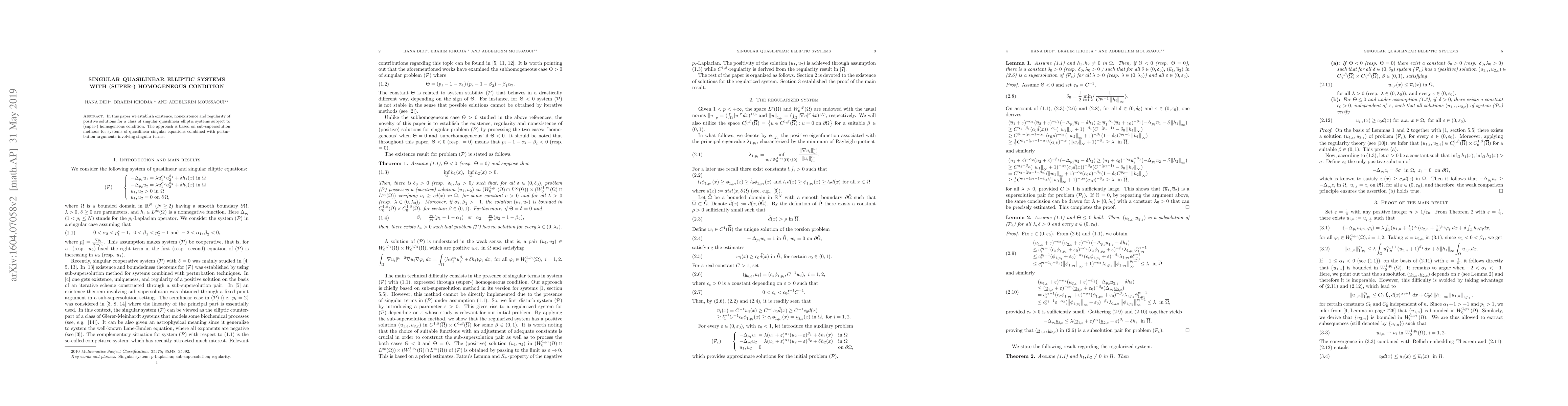 Summary: This paper explores singular quasilinear elliptic systems under (super-)homogeneous conditions, establishing existence, nonexistence, and regularity of positive solutions using sub-supersolution methods and perturbation arguments.