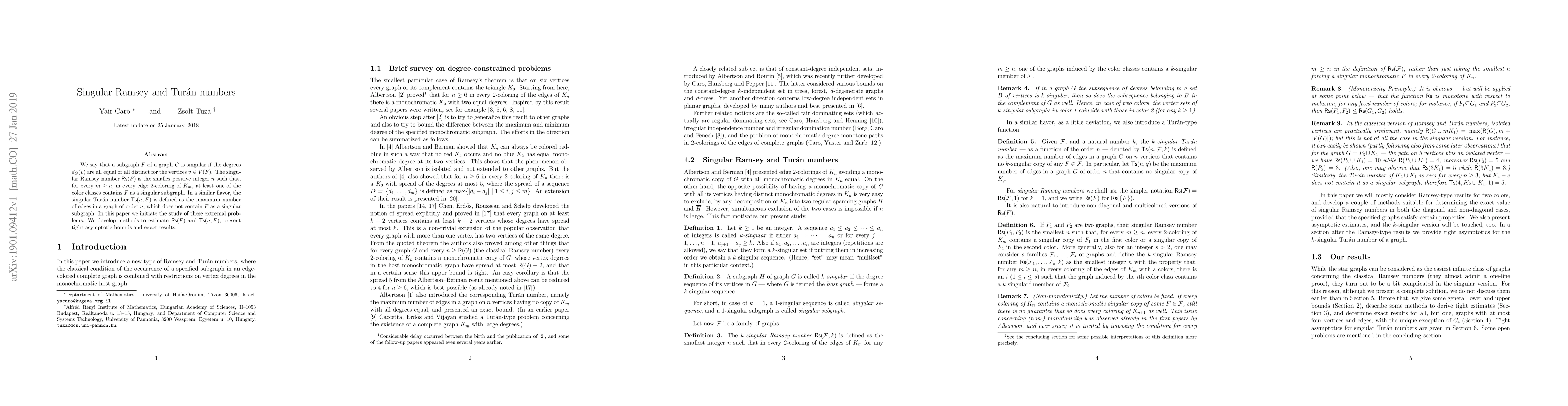 This paper initiates the study of singular Ramsey and Turán numbers, defining singular subgraphs and introducing the singular Ramsey number Rs$(F)$ and singular Turán number Ts$(n,F)$. The authors develop methods to estimate these numbers, presenting tight asymptotic bounds and exact results.