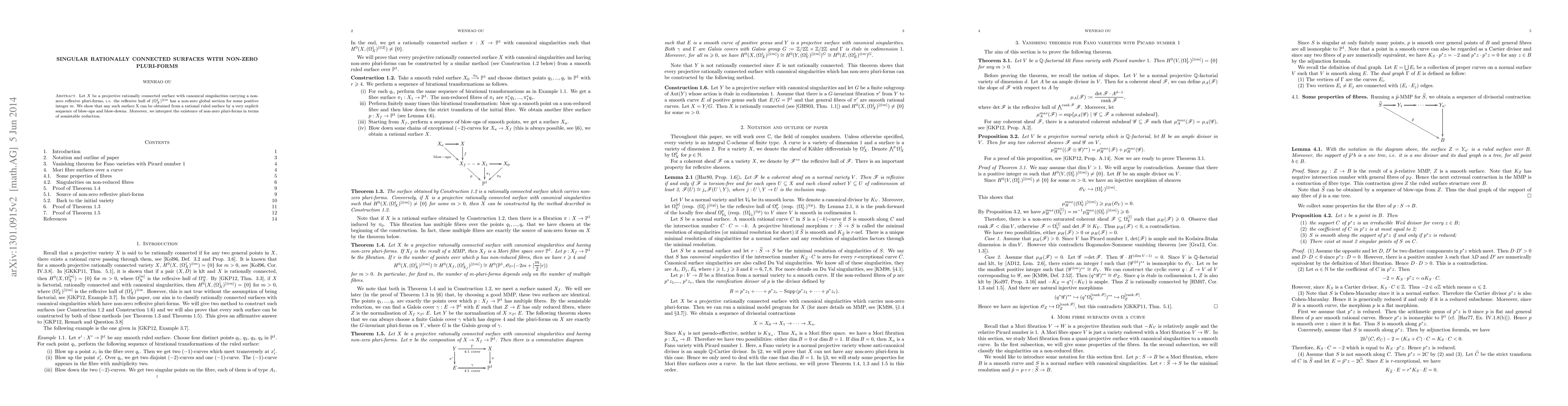 This paper studies projective rationally connected surfaces with canonical singularities that possess non-zero pluri-forms, demonstrating their derivation from rational ruled surfaces via a specific sequence of blow-ups and blow-downs, and linking the presence of non-zero pluri-forms to semistable reduction.