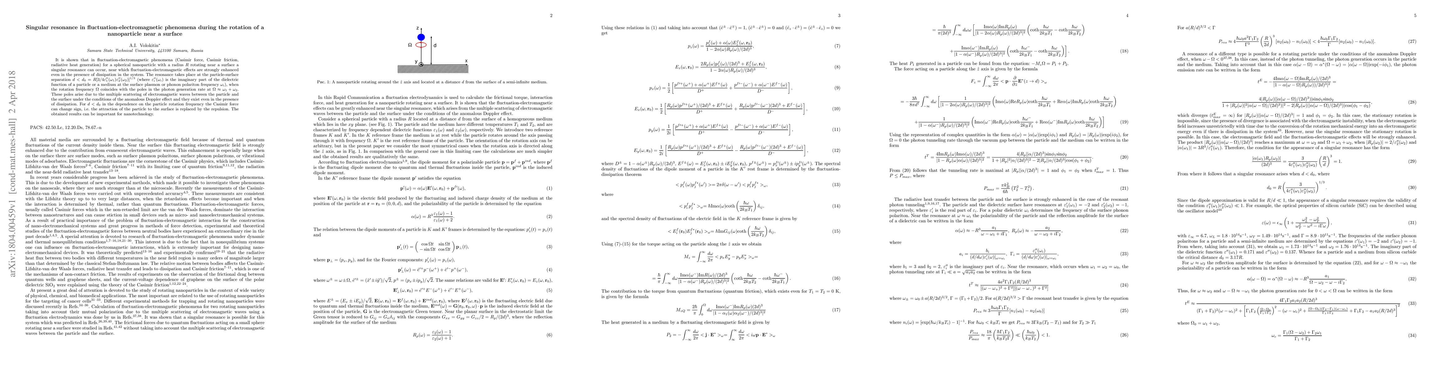 a radius $R$ rotating near a surface a singular resonance can occur, near which