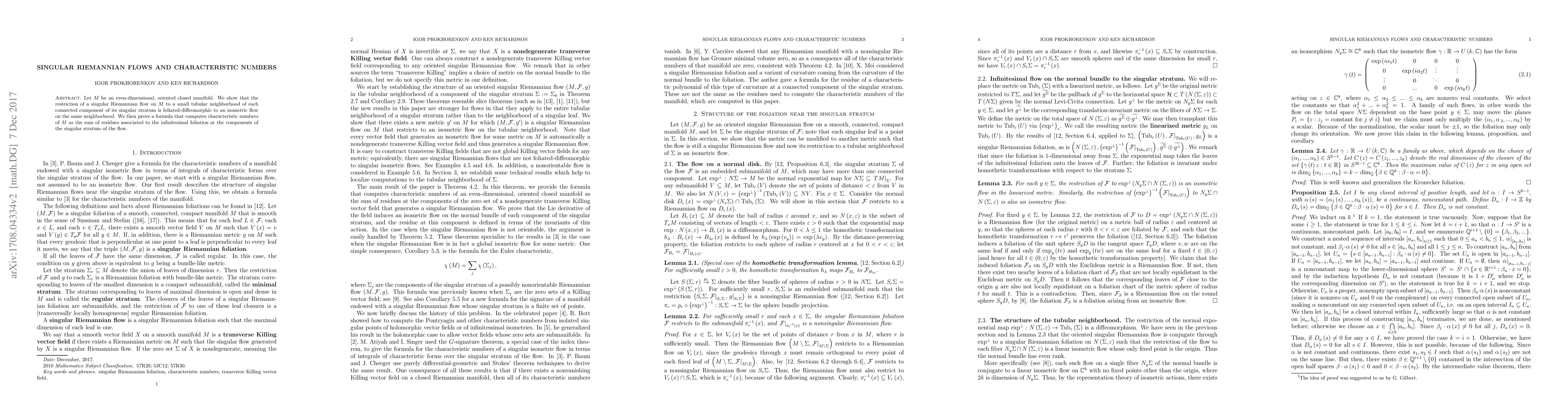 Researchers found that a specific type of flow on a manifold is foliated-diffeomorphic to an isometric flow in a small neighborhood of its singular stratum, providing a new method to calculate characteristic numbers of the manifold.