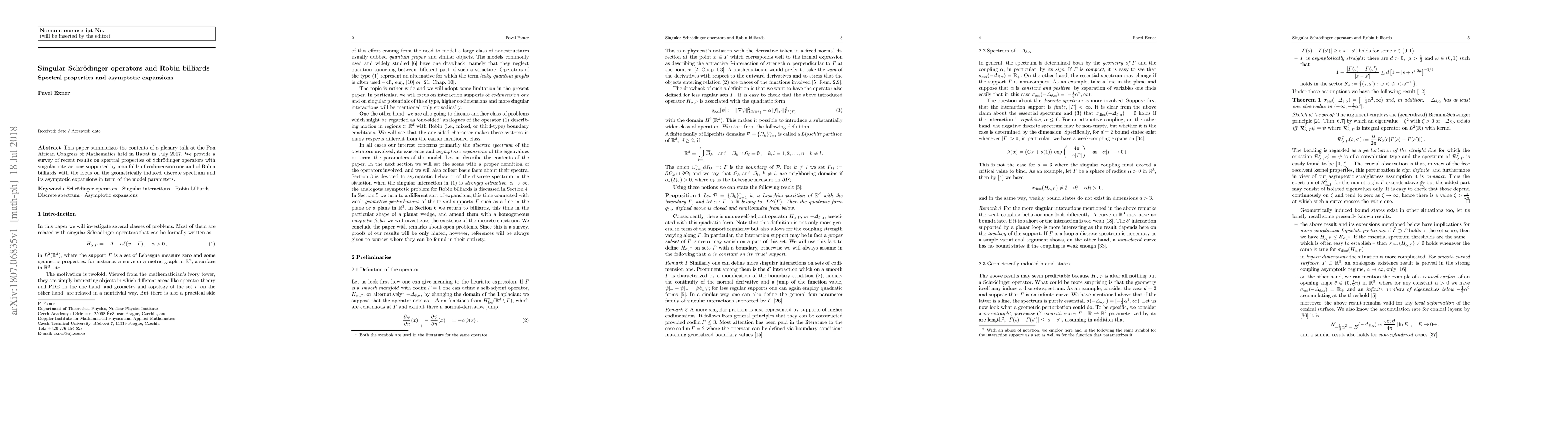 This paper summarizes the contents of a plenary talk at the Pan African Congress of Mathematics held in Rabat in July 2017. We provide a survey of recent results on spectral properties of Schr\"odinger operators with singular interactions supported by manifolds of codimension one and of Robin billiards with the focus on the geometrically induced discrete spectrum and its asymptotic expansions in term of the model parameters.
