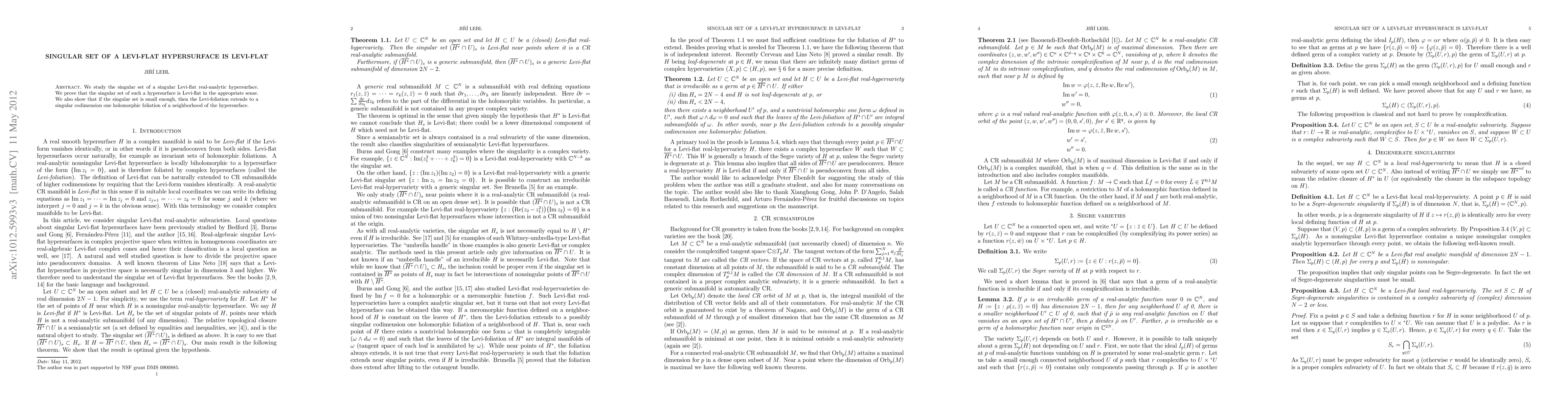Summary: This paper demonstrates that the singular set of a Levi-flat real-analytic hypersurface is itself Levi-flat. Additionally, it proves that when the singular set is sufficiently small, the Levi-foliation can be extended to a singular holomorphic foliation in a neighborhood around the hypersurface.