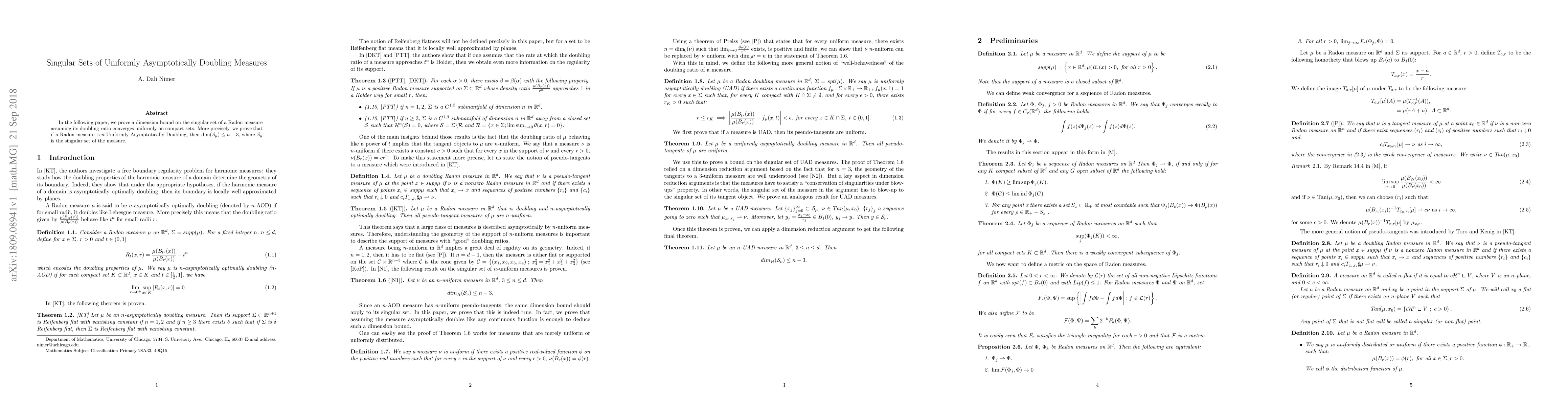 This paper proves that for a Radon measure with uniformly asymptotically doubling ratio, its singular set dimension is bounded at n-3, where n is the doubling ratio.