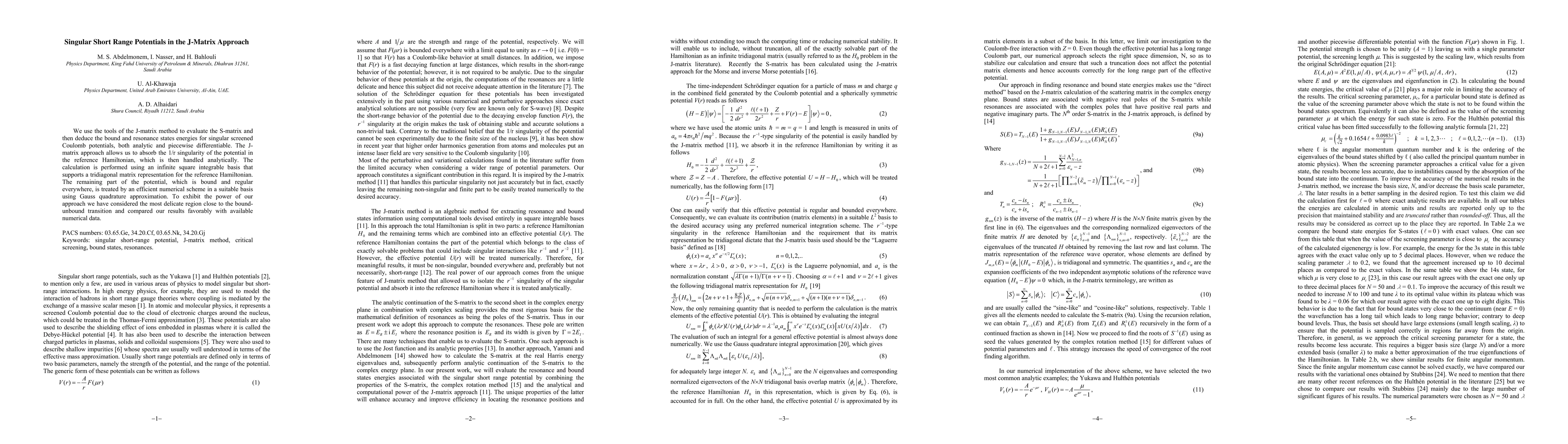 We use the tools of the J-matrix method to evaluate the S-matrix and then deduce the bound and resonance states energies for singular screened Coulomb potentials, both analytic and piecewise differentiable. The J-matrix approach allows us to absorb the 1/r singularity of the potential in the reference Hamiltonian, which is then handled analytically. The calculation is performed using an infinite square integrable basis that supports a tridiagonal matrix representation for the reference Hamiltonian. The remaining part of the potential, which is bound and regular everywhere, is treated by an efficient numerical scheme in a suitable basis using Gauss quadrature approximation. To exhibit the power of our approach we have considered the most delicate region close to the bound-unbound transition and compared our results favorably with available numerical data.