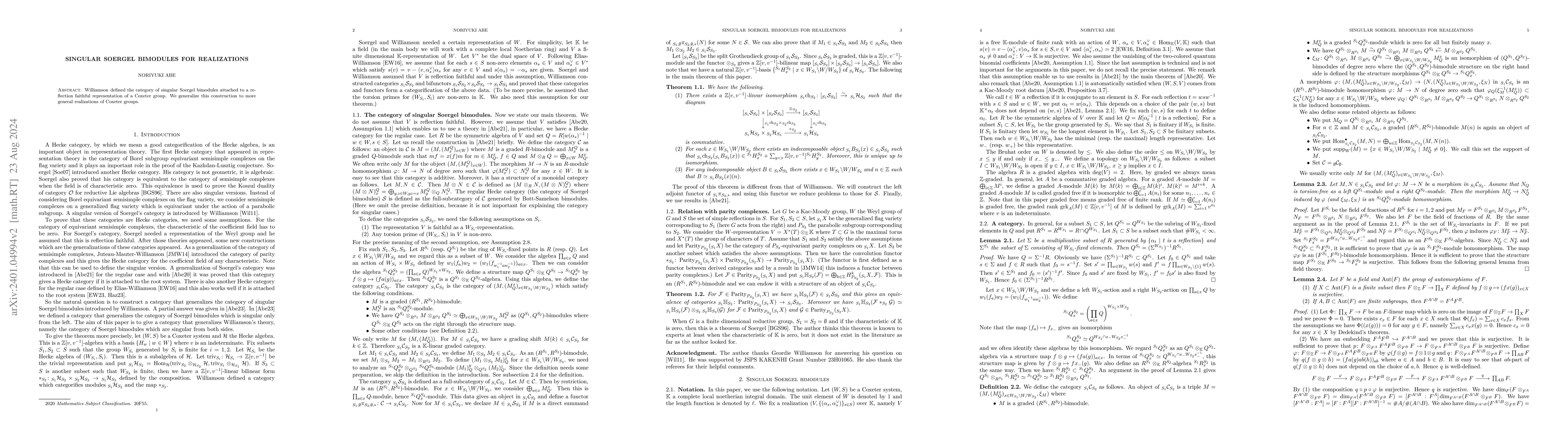 This paper generalizes Williamson's category of singular Soergel bimodules to more general realizations of Coxeter groups, expanding the framework for understanding these mathematical objects beyond reflection faithful representations.