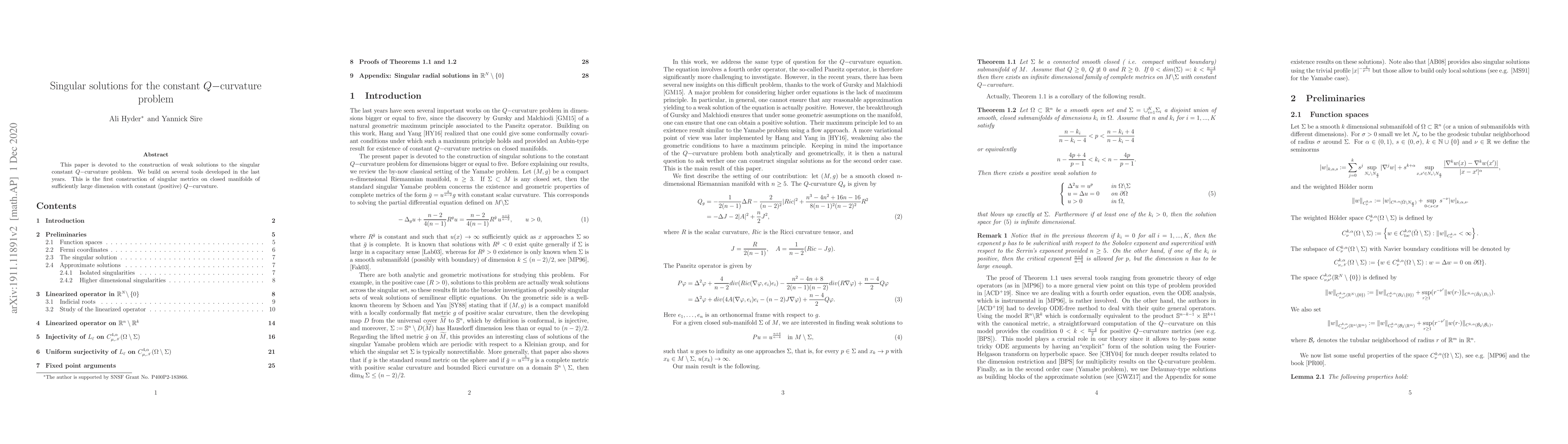 This paper is devoted to the construction of weak solutions to the singular constant $Q$-curvature problem. We build on several tools developed in the last years. This is the first construction of singular metrics on closed manifolds of sufficiently large dimension with constant (positive) $Q$-curvature.