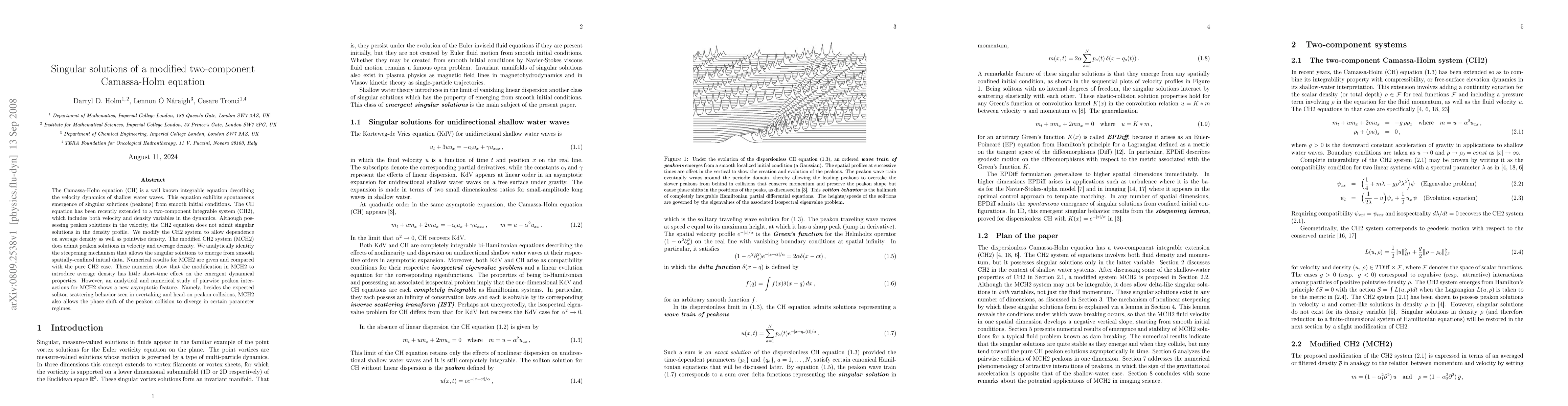 Researchers found that modifying a two-component Camassa-Holm equation to include average density allows for peakon solutions in velocity and average density, with new asymptotic features such as diverging phase shifts in certain parameter regimes.