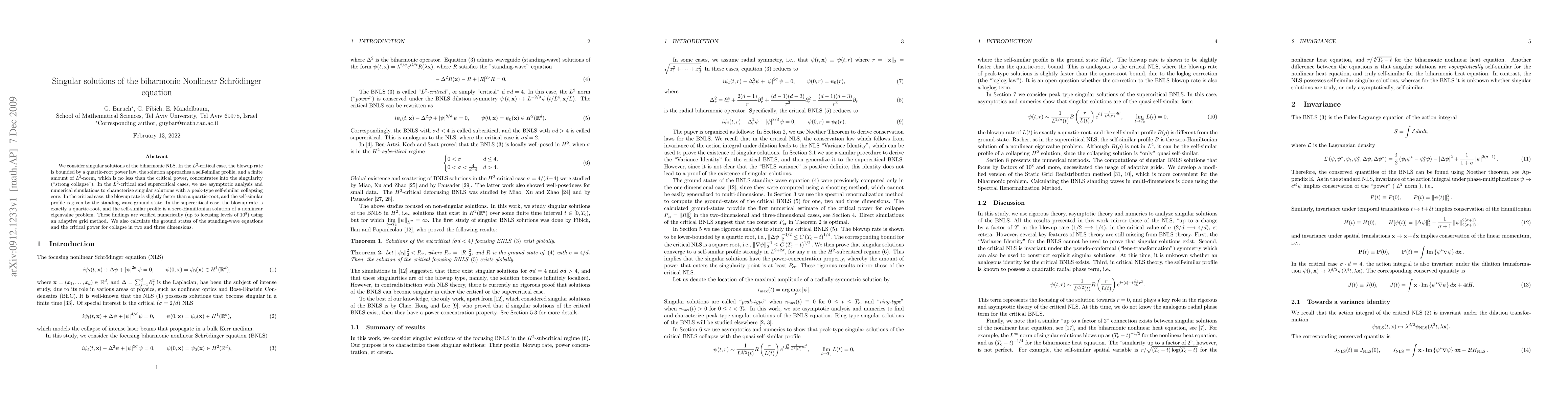 Research finds that singular solutions of the biharmonic Nonlinear Schrodinger equation exhibit a specific behavior depending on the criticality of the case, including bounded blowup rates and self-similar profiles.