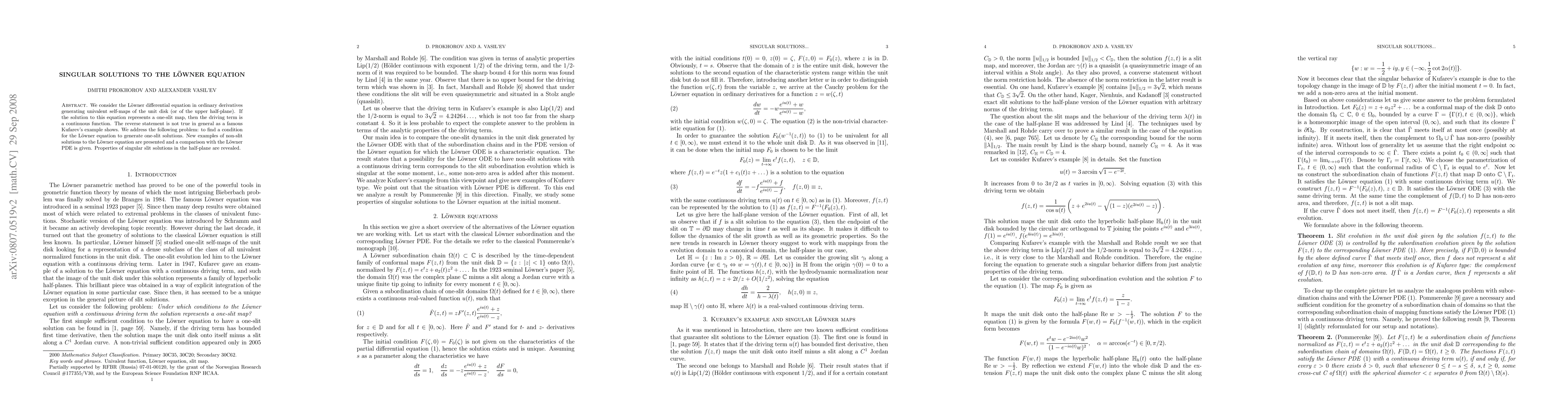 This paper explores the Loewner equation's singular solutions that generate one-slit maps, presenting criteria for such solutions and new examples of non-slit solutions, while highlighting properties of singular slit solutions.