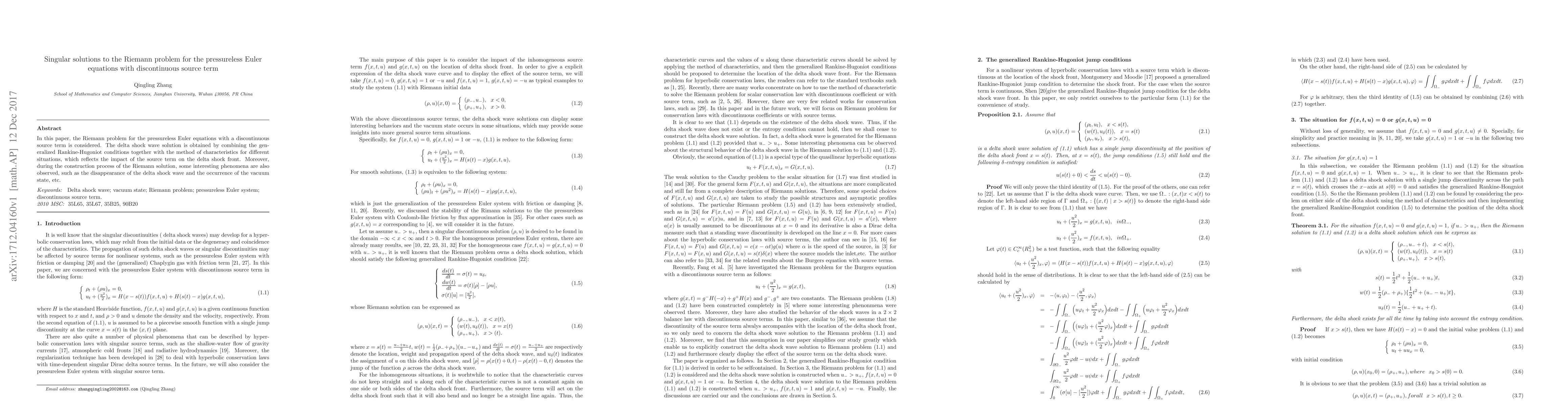 This paper investigates the Riemann problem for the pressureless Euler equations with a discontinuous source term, deriving the delta shock wave solution through generalized Rankine-Hugoniot conditions and the method of characteristics. It also observes phenomena like the disappearance of the delta shock wave and the emergence of vacuum states.