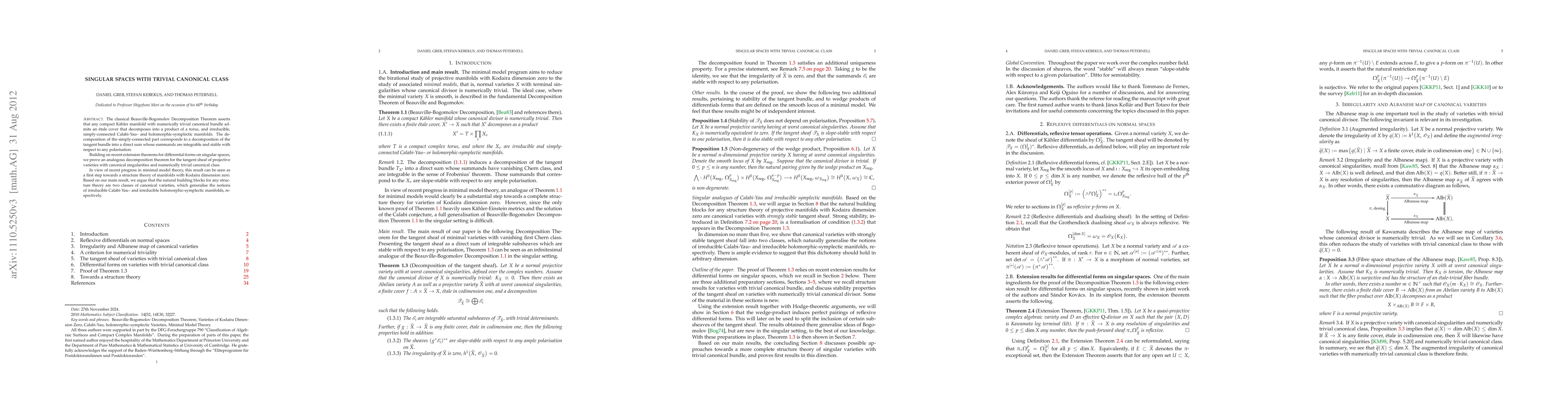 The paper proves a decomposition theorem for projective varieties with canonical singularities and a numerically trivial canonical class, analogous to the Beauville-Bogomolov Decomposition Theorem for Kähler manifolds. This result lays the foundation for a structure theory of manifolds with Kodaira dimension zero, identifying generalized Calabi-Yau and holomorphic-symplectic varieties as fundamental building blocks.