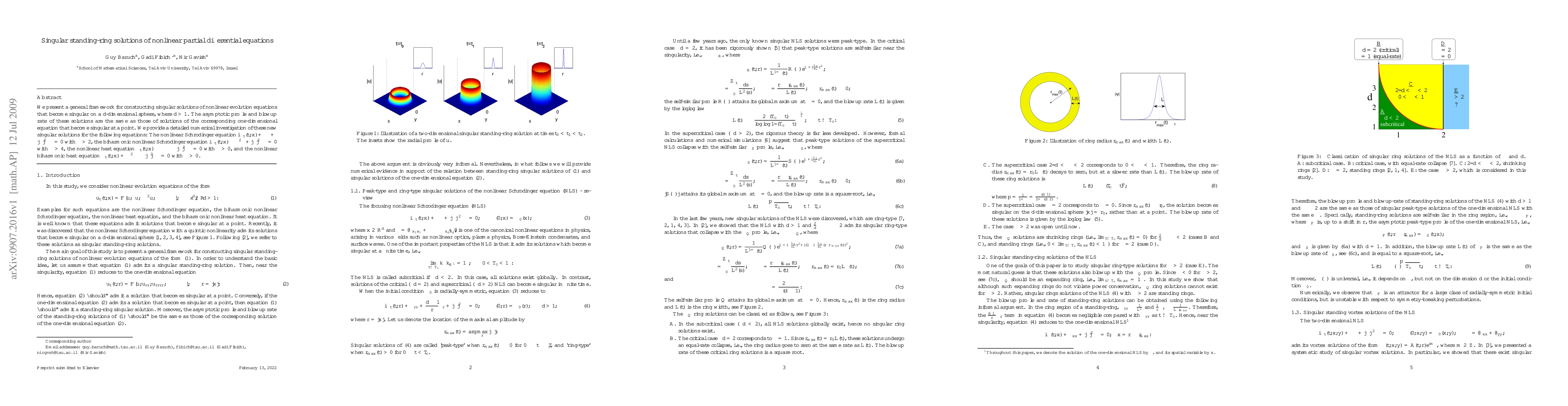 This paper develops a framework for constructing singular solutions of nonlinear evolution equations that become singular on a d-dimensional sphere (d>1). It numerically investigates the asymptotic profiles and blowup rates of these solutions, showing they resemble those of solutions singularizing at a point in one dimension.