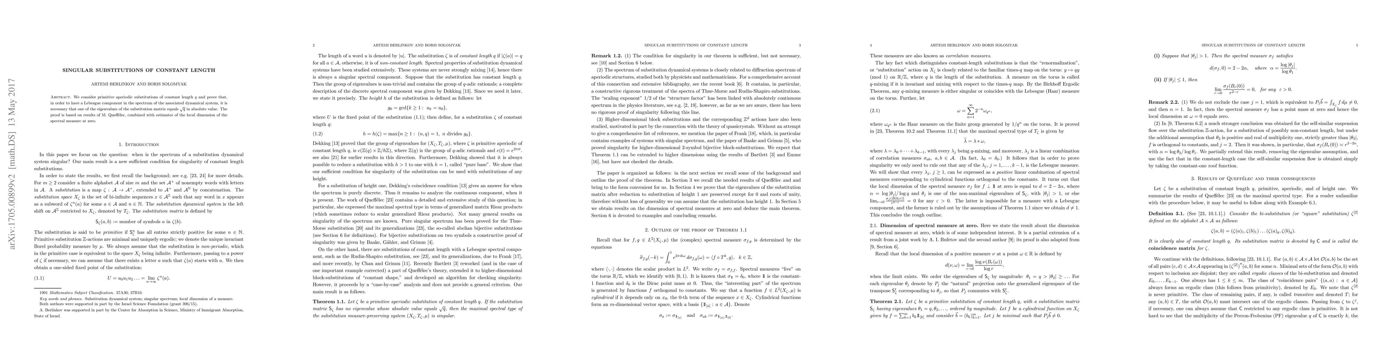 A new study finds that for certain mathematical substitutions with a constant length, one specific eigenvalue must exist in order to have a certain property of the system. This discovery is based on previous work by mathematician M. Queffelec.