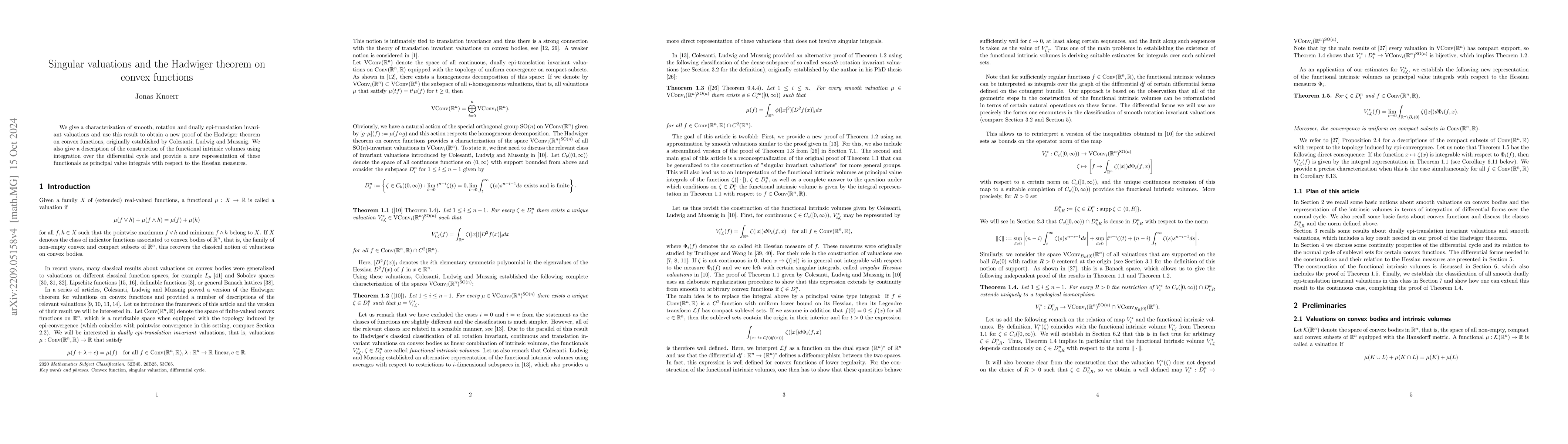 We give a characterization of smooth, rotation and dually epi-translation invariant valuations and use this result to obtain a new proof of the Hadwiger theorem on convex functions. We also give a description of the construction of the functional intrinsic volumes using integration over the differential cycle and provide a new representation of these functionals as principal value integrals with respect to the Hessian measures.