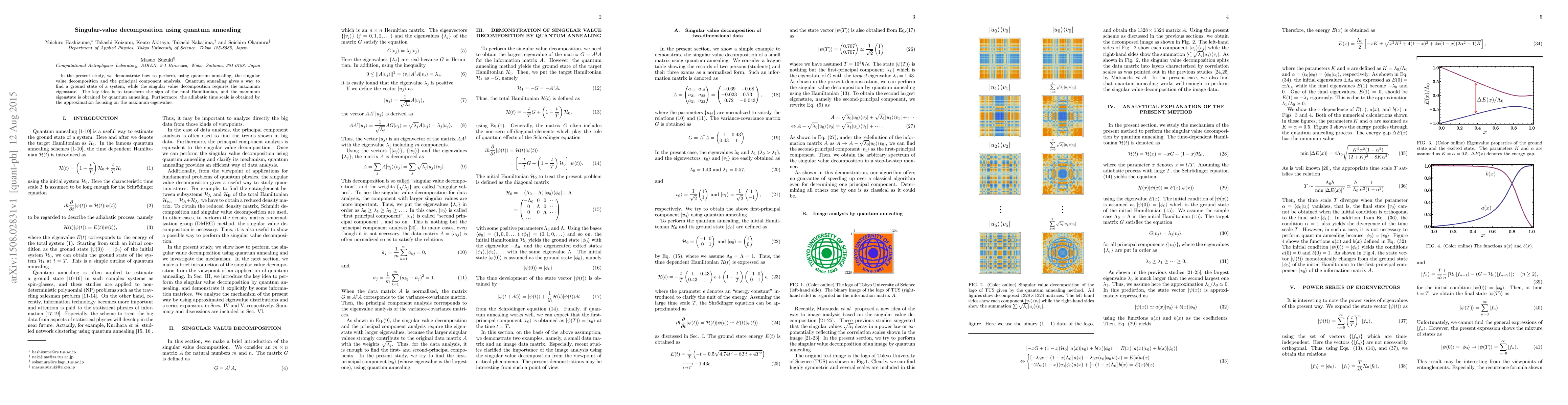 This paper explores the use of quantum annealing to perform singular value decomposition and principal component analysis, leveraging the method to find the maximum eigenstate by transforming the final Hamiltonian and optimizing the adiabatic time scale for the highest eigenvalue.