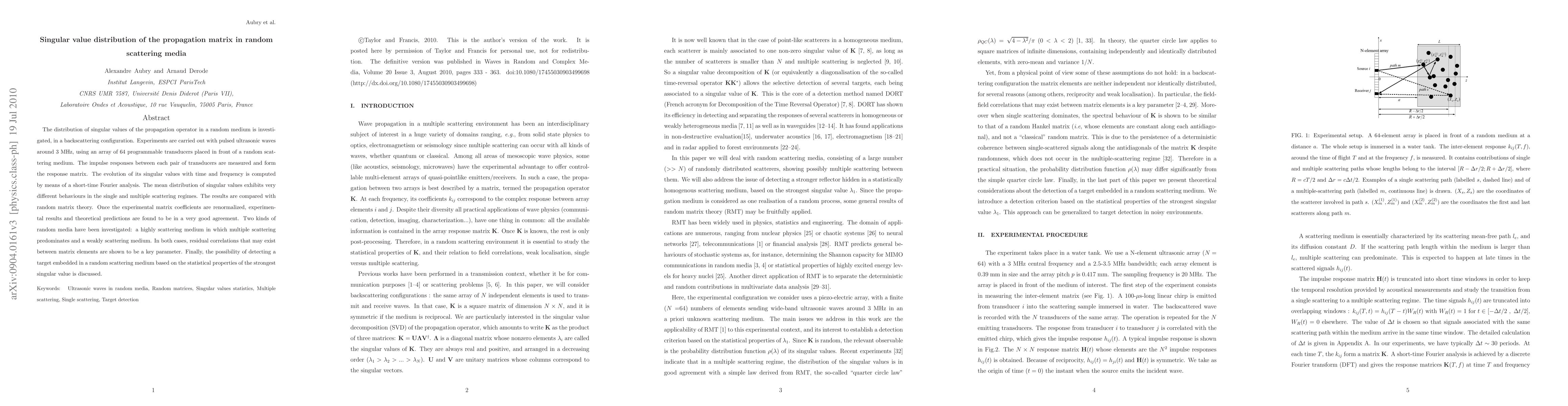 Researchers studied the distribution of singular values in a random scattering medium using ultrasonic waves, finding agreement with theory when matrix elements were renormalized, and highlighting the importance of residual correlations in detecting targets.