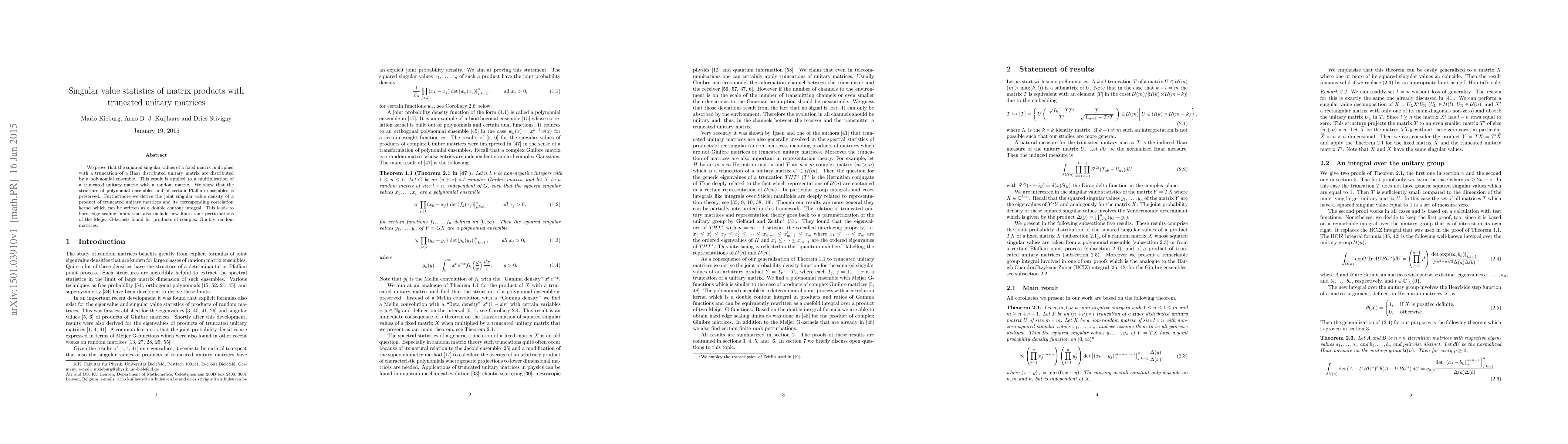 This paper demonstrates that the squared singular values of a fixed matrix multiplied by a truncated Haar distributed unitary matrix follow a polynomial ensemble distribution. It also explores the joint singular value density and correlation kernel for products of truncated unitary matrices, revealing a double contour integral structure and new finite rank perturbations of the Meijer G-kernels.