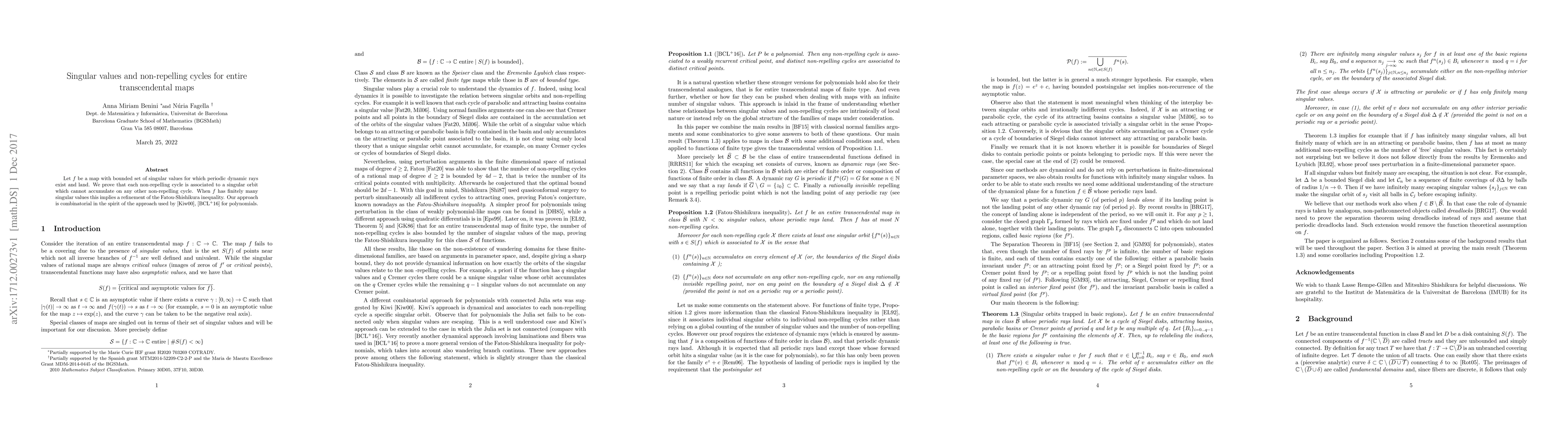 This paper proves that in entire transcendental maps with bounded singular values, non-repelling cycles are linked to singular orbits that do not accumulate on other non-repelling cycles. For maps with finitely many singular values, it refines the Fatou-Shishikura inequality using a combinatorial approach akin to previous work on polynomials.