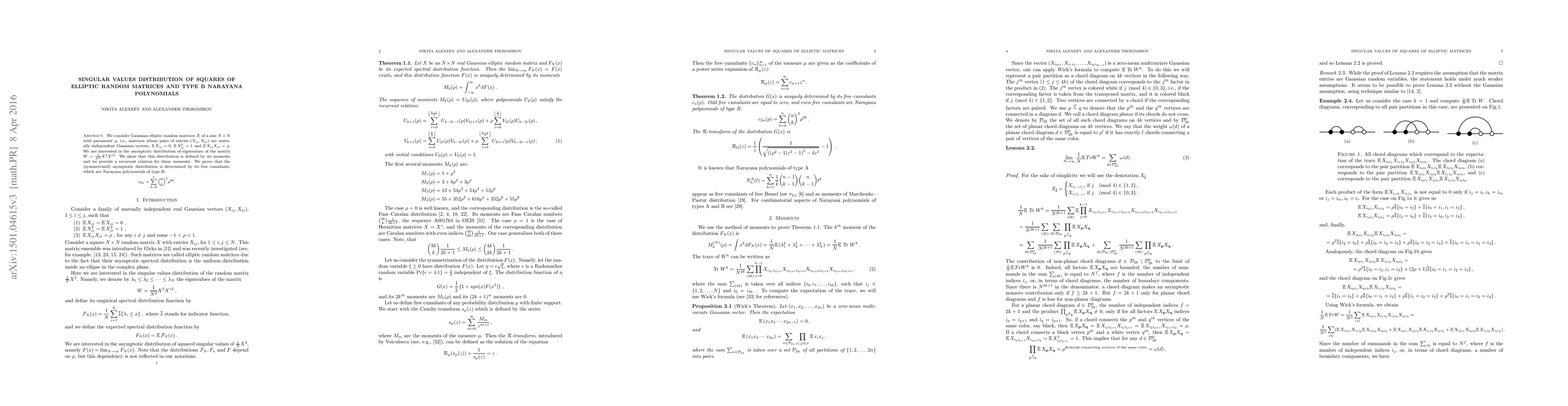 Summary: This paper investigates the asymptotic distribution of eigenvalues for the matrix $W = \frac{1}{N^2} X^2 X^{*2}$ derived from Gaussian elliptic random matrices. It reveals that this distribution is characterized by its moments, determined by Type B Narayana polynomials, specifically $c_{2n} = \sum_{k=0}^n \binom{n}{k}^2 \rho^{2k}$.