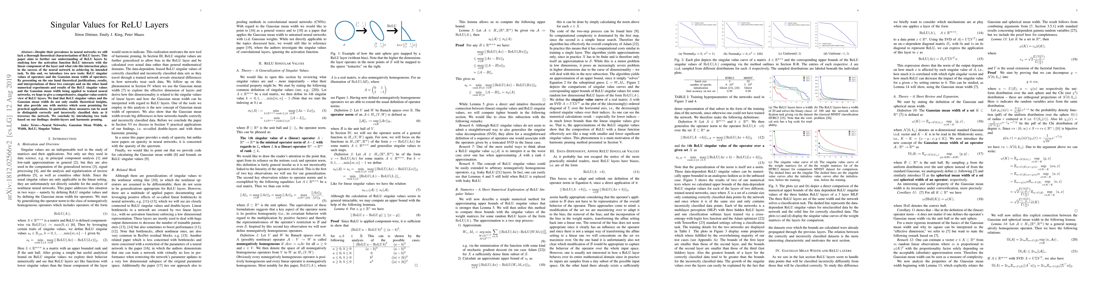 This paper explores the theoretical underpinnings of ReLU layers in neural networks, introducing ReLU singular values and Gaussian mean width to analyze their interaction with linear components. The study provides both theoretical insights and practical metrics, suggesting these tools can distinguish correctly and incorrectly classified data, and proposes double-layers and harmonic pruning based on these findings.