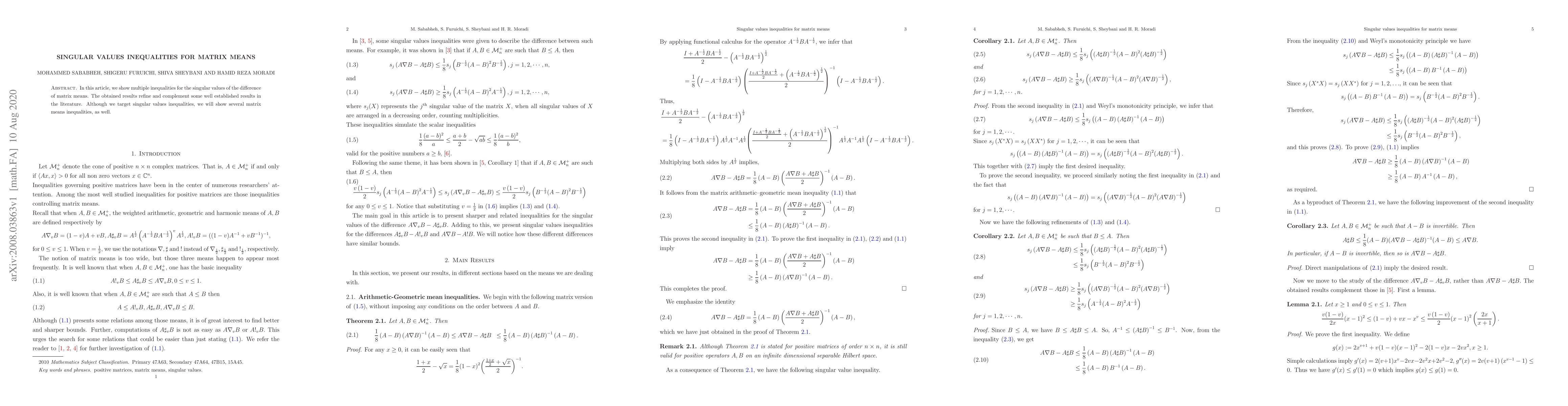 In this article, we show multiple inequalities for the singular values of the difference of matrix means. The obtained results refine and complement some well established results in the literature. Although we target singular values inequalities, we will show several matrix means inequalities, as well.