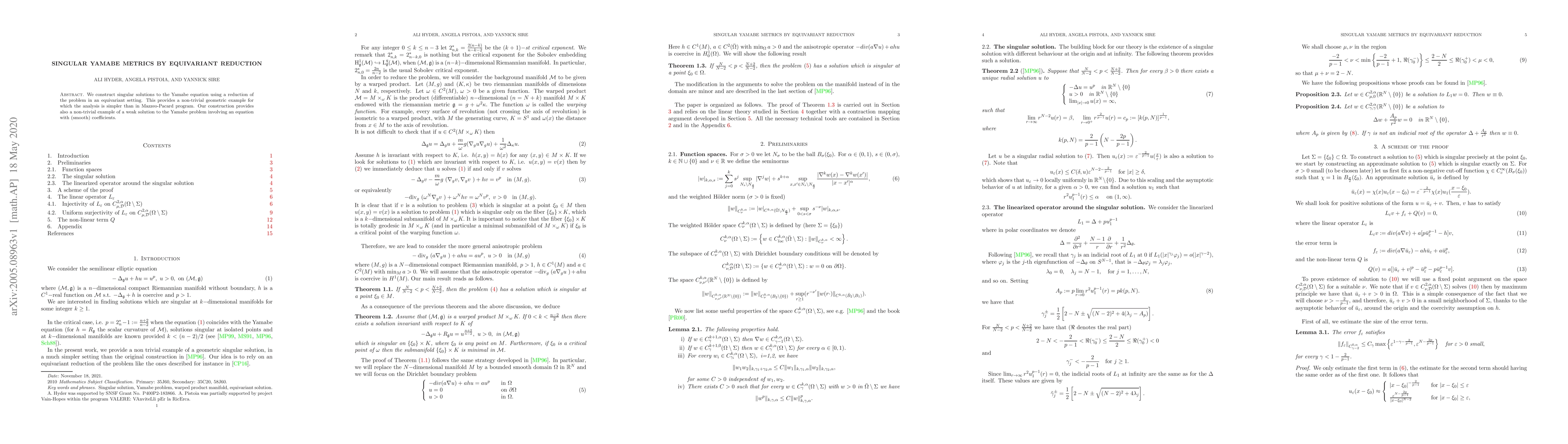 We construct singular solutions to the Yamabe equation using a reduction of the problem in an equivariant setting. This provides a non-trivial geometric example for which the analysis is simpler than in Mazzeo-Pacard program. Our construction provides also a non-trivial example of a weak solution to the Yamabe problem involving an equation with (smooth) coefficients.