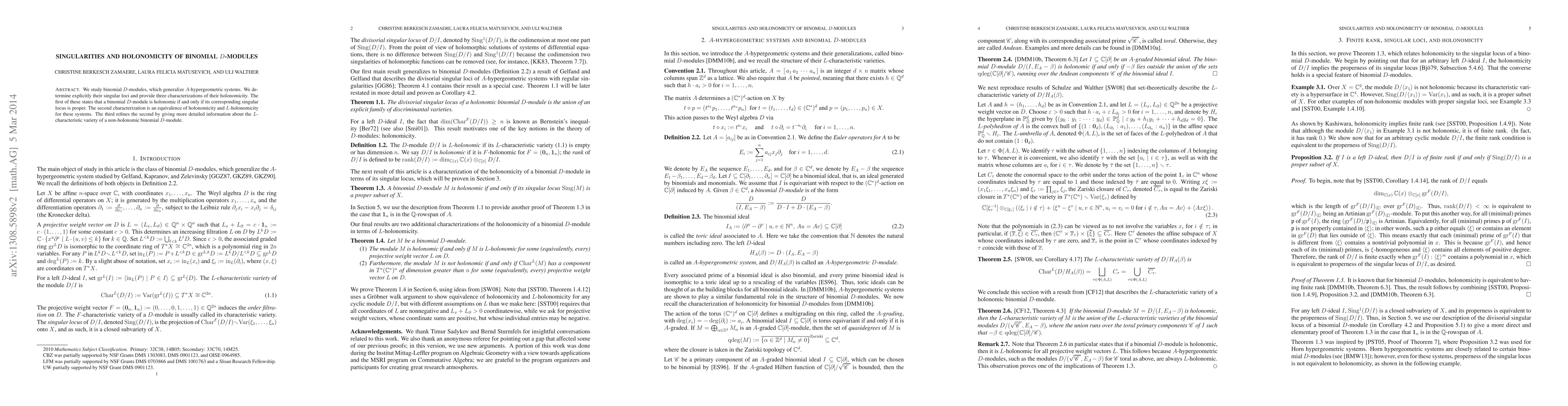 This paper investigates binomial D-modules, generalizing A-hypergeometric systems, and identifies their singular loci. It provides three characterizations of holonomicity, including a condition where holonomicity corresponds to a proper singular locus and an equivalence with L-holonomicity.