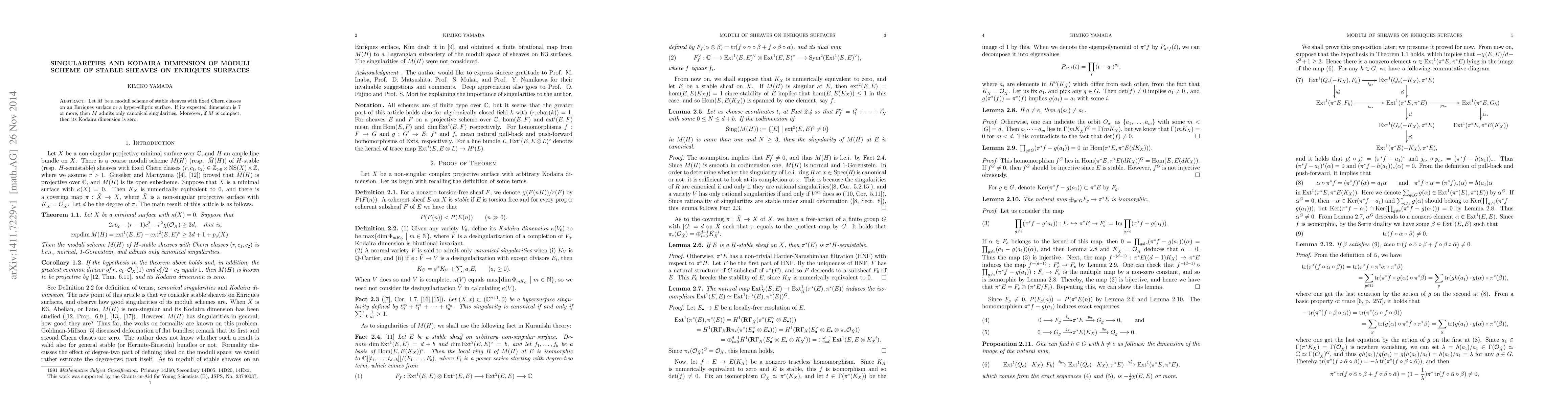 Summary: The moduli scheme M of stable sheaves on Enriques or hyper-elliptic surfaces with expected dimension 7 or more exhibits only canonical singularities. If M is compact, its Kodaira dimension is zero.