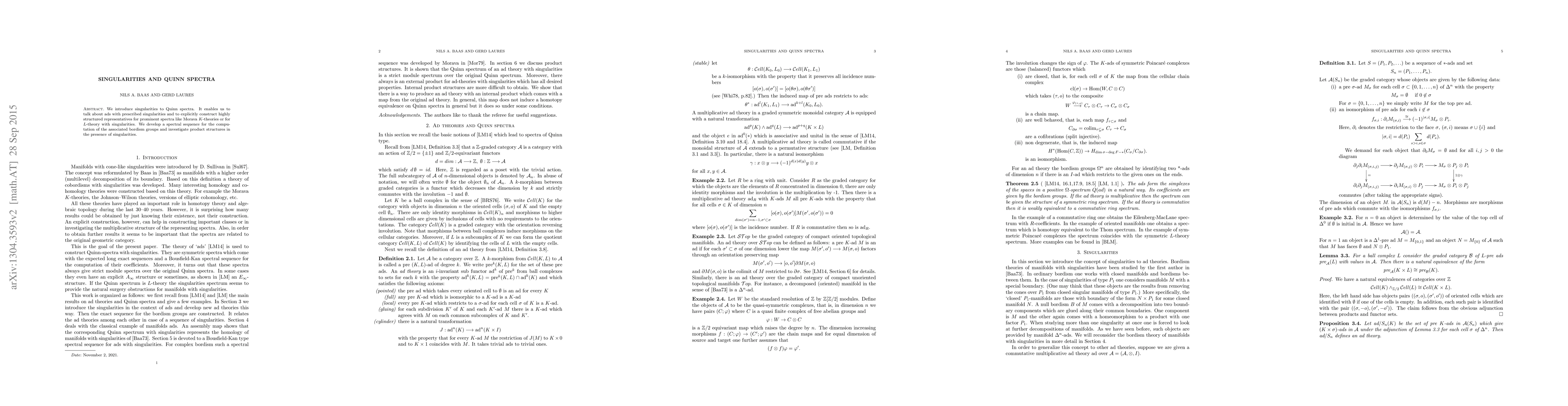 We introduce singularities to Quinn spectra. It enables us to talk about ads with prescribed singularities and to explicitly construct representatives for prominent spectra like Morava $K$-theories or for $L$-theory with singularities. We develop a spectral sequence for the computation of the associated bordism groups and investigate product structures in the presence of singularities.