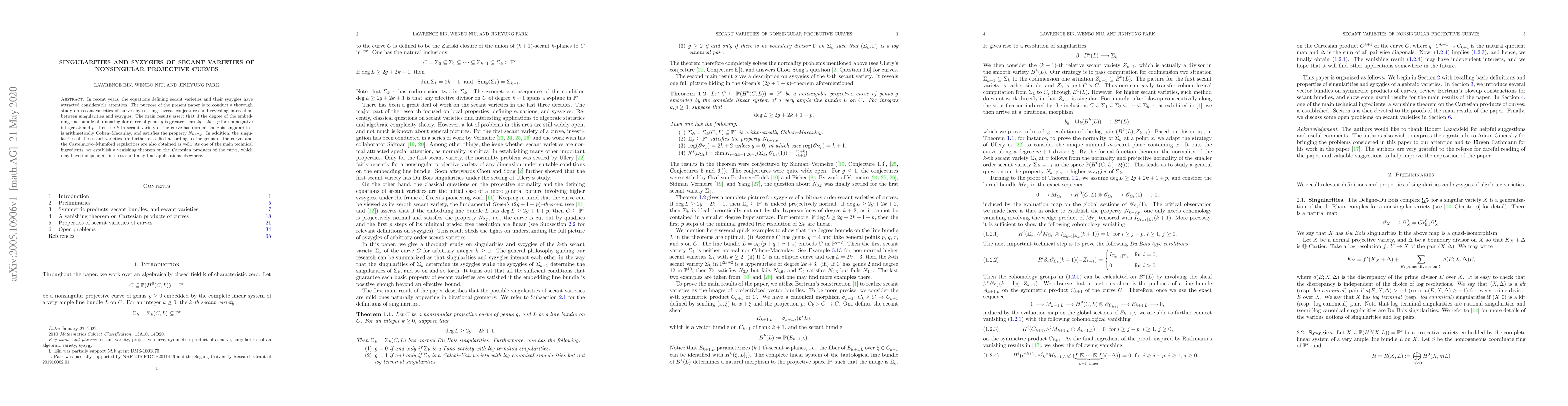 In recent years, the equations defining secant varieties and their syzygies have attracted considerable attention. The purpose of the present paper is to conduct a thorough study on secant varieties of curves by settling several conjectures and revealing interaction between singularities and syzygies. The main results assert that if the degree of the embedding line bundle of a nonsingular curve of genus $g$ is greater than $2g+2k+p$ for nonnegative integers $k$ and $p$, then the $k$-th secant variety of the curve has normal Du Bois singularities, is arithmetically Cohen--Macaulay, and satisfies the property $N_{k+2, p}$. In addition, the singularities of the secant varieties are further classified according to the genus of the curve, and the Castelnuovo--Mumford regularities are also obtained as well. As one of the main technical ingredients, we establish a vanishing theorem on the Cartesian products of the curve, which may have independent interests and may find applications elsewhere.