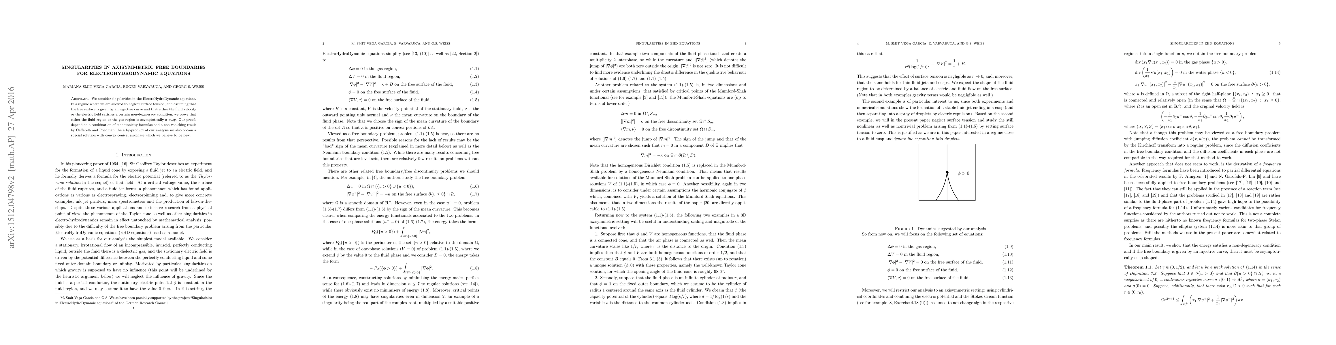 We consider singularities in the ElectroHydroDynamic equations. In a regime where we are allowed to neglect surface tension, and assuming that the free surface is given by an injective curve and that either the fluid velocity or the electric field satisfies a certain non-degeneracy condition, we prove that either the fluid region or the gas region is asymptotically a cusp. Our proofs depend on a combination of monotonicity formulas and a non-vanishing result by Caffarelli and Friedman. As a by-product of our analysis we also obtain a special solution with convex conical air-phase which we believe to be new.