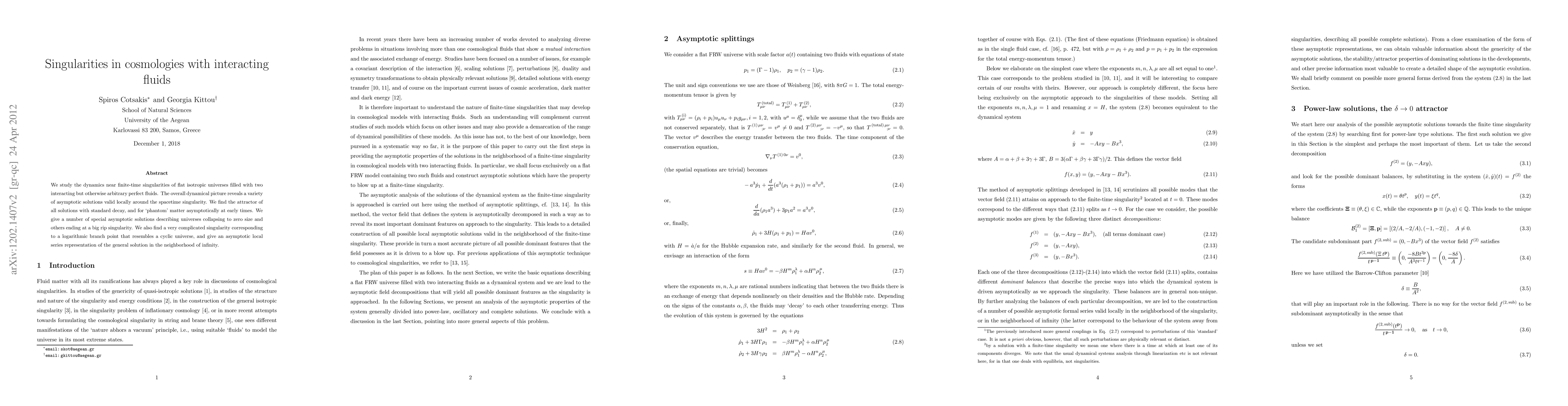 This paper studies the behavior of flat universes filled with interacting perfect fluids near finite-time singularities, revealing various asymptotic solutions including collapse to zero size or big rip singularity.