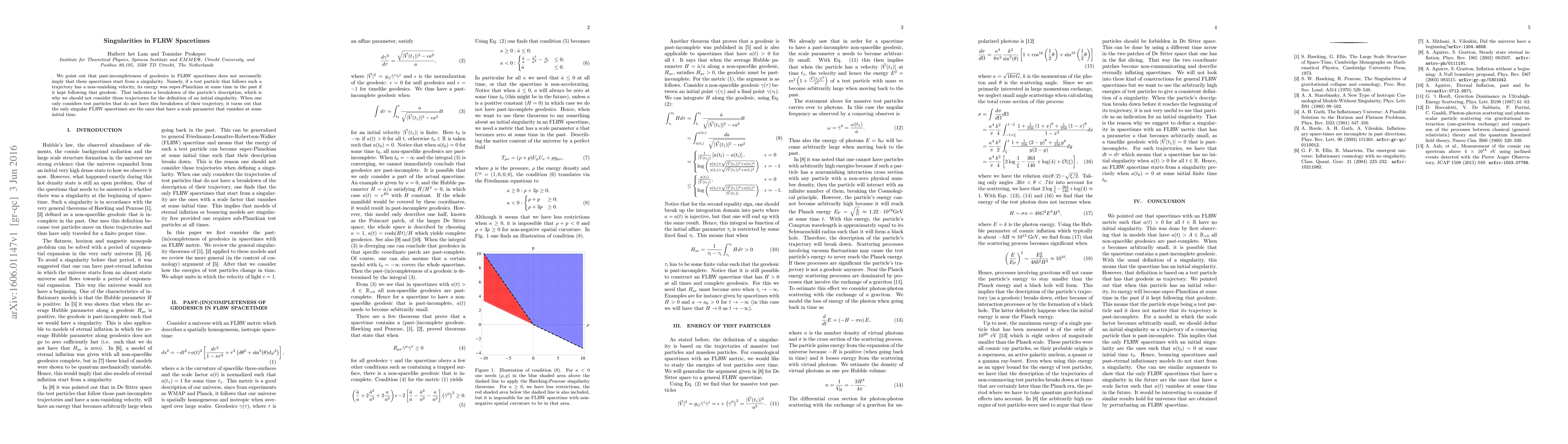 This paper argues that past-incomplete geodesics in FLRW spacetimes do not necessarily indicate a singularity, as super-Planckian energy conditions may signal a breakdown in particle description. Singular FLRW spacetimes are those where the scale parameter vanishes at the initial time.