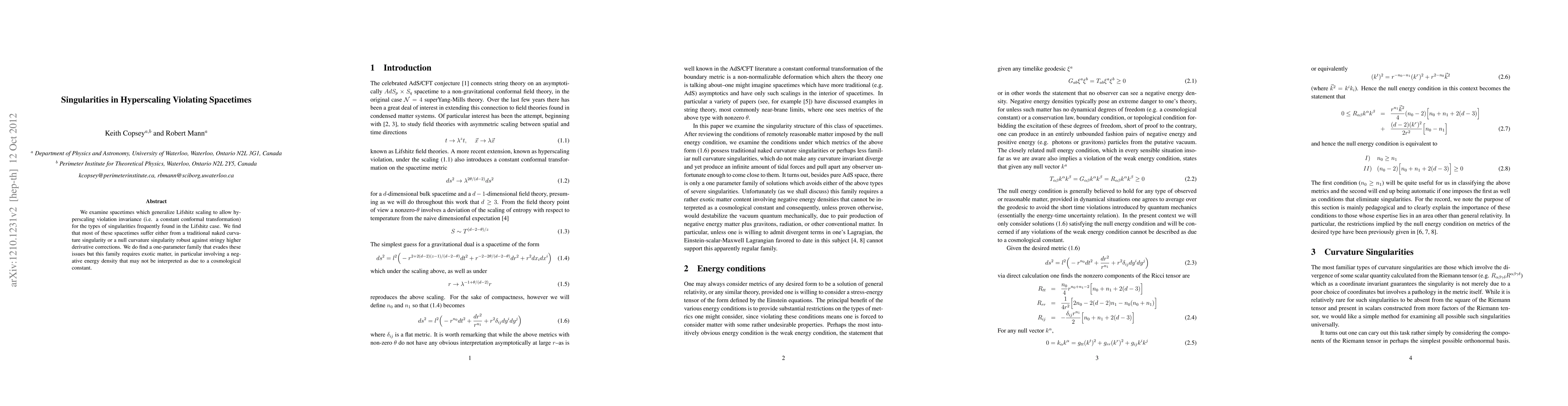 This paper explores spacetimes with hyperscaling violation, revealing that most exhibit traditional naked or null curvature singularities, though a unique one-parameter family avoids these issues, albeit requiring exotic matter with negative energy density.