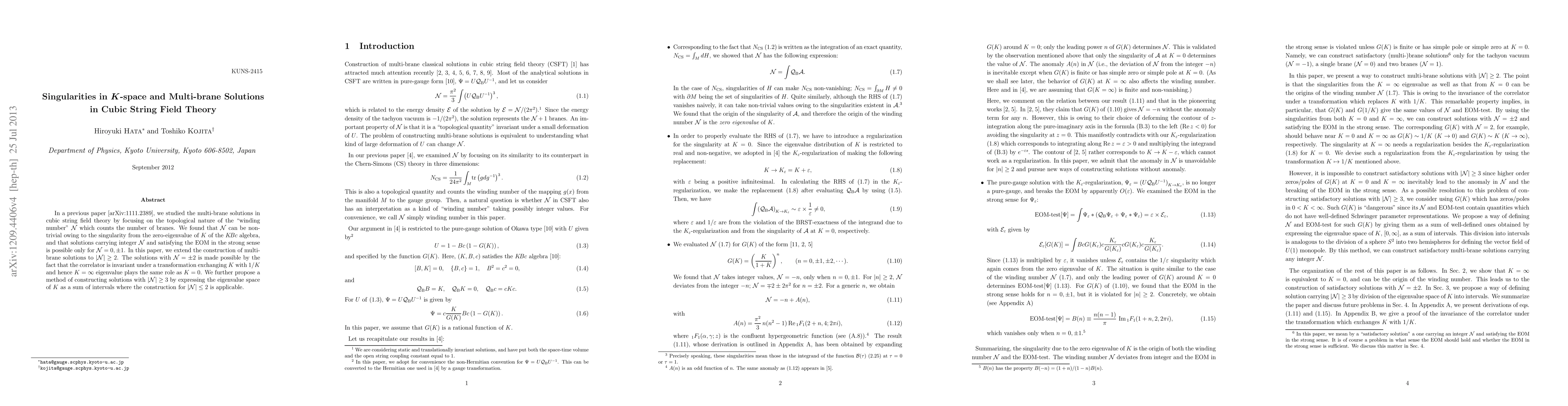 In a previous paper [arXiv:1111.2389], we studied the multi-brane solutions in cubic string field theory by focusing on the topological nature of the "winding number" N which counts the number of branes. We found that N can be non-trivial owing to the singularity from the zero-eigenvalue of K of the KBc algebra, and that solutions carrying integer N and satisfying the EOM in the strong sense is possible only for N=0,\pm 1. In this paper, we extend the construction of multi-brane solutions to |N|\ge 2. The solutions with N=\pm 2 is made possible by the fact that the correlator is invariant under a transformation exchanging K with 1/K and hence K=\infty eigenvalue plays the same role as K=0. We further propose a method of constructing solutions with |N|\ge 3 by expressing the eigenvalue space of K as a sum of intervals where the construction for |N|\le 2 is applicable.