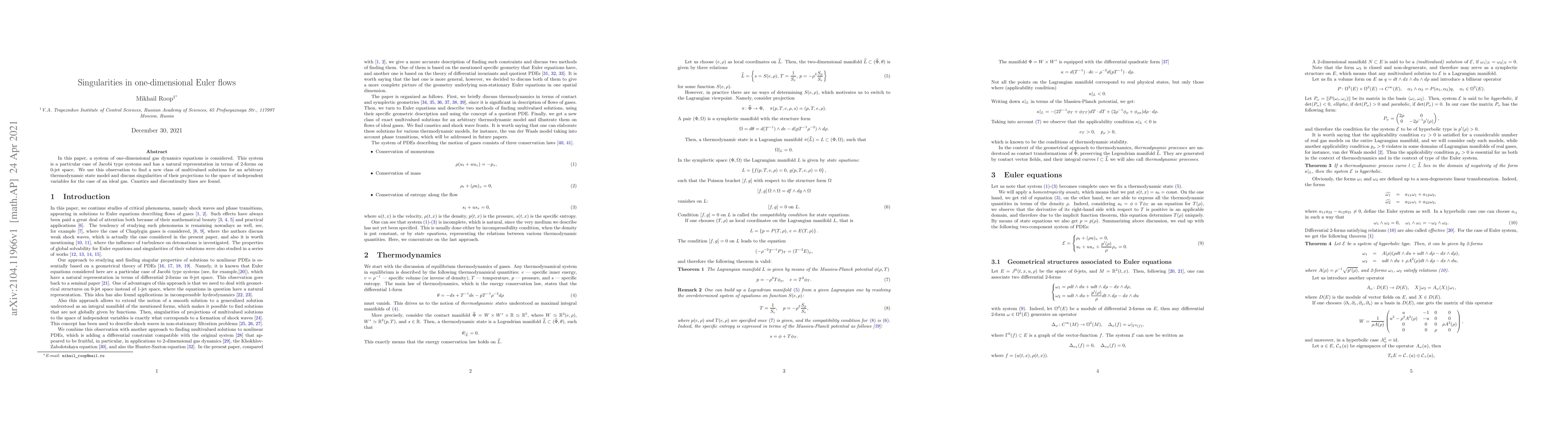 Researchers discovered a new class of multivalued solutions for one-dimensional Euler flows, highlighting singularities and caustics that can occur in gas dynamics equations.