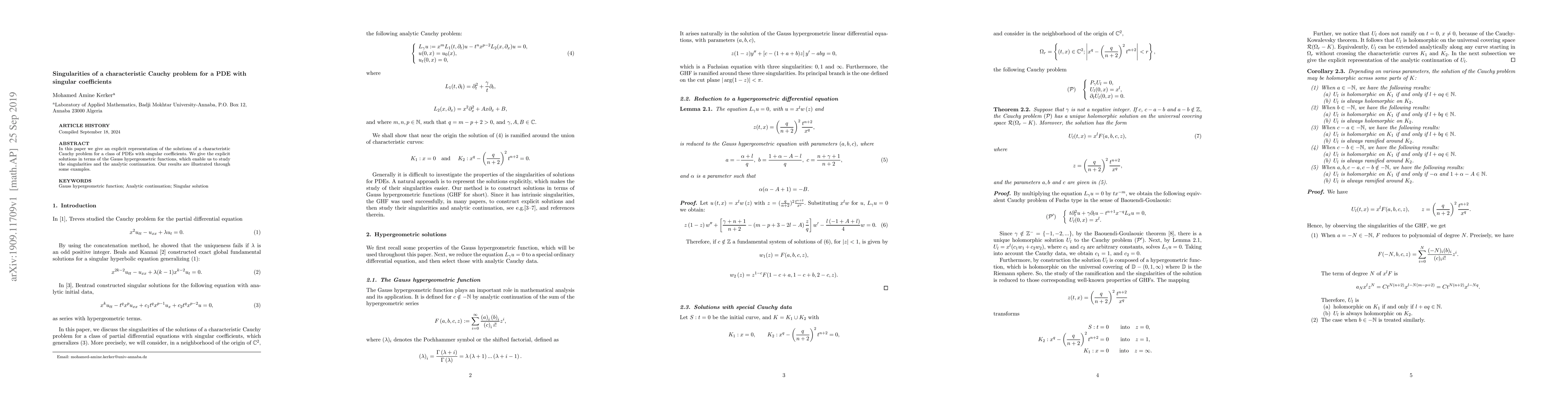 Researchers found explicit solutions to a class of PDEs with singular coefficients using Gauss hypergeometric functions, enabling the study of singularities and analytic continuation.