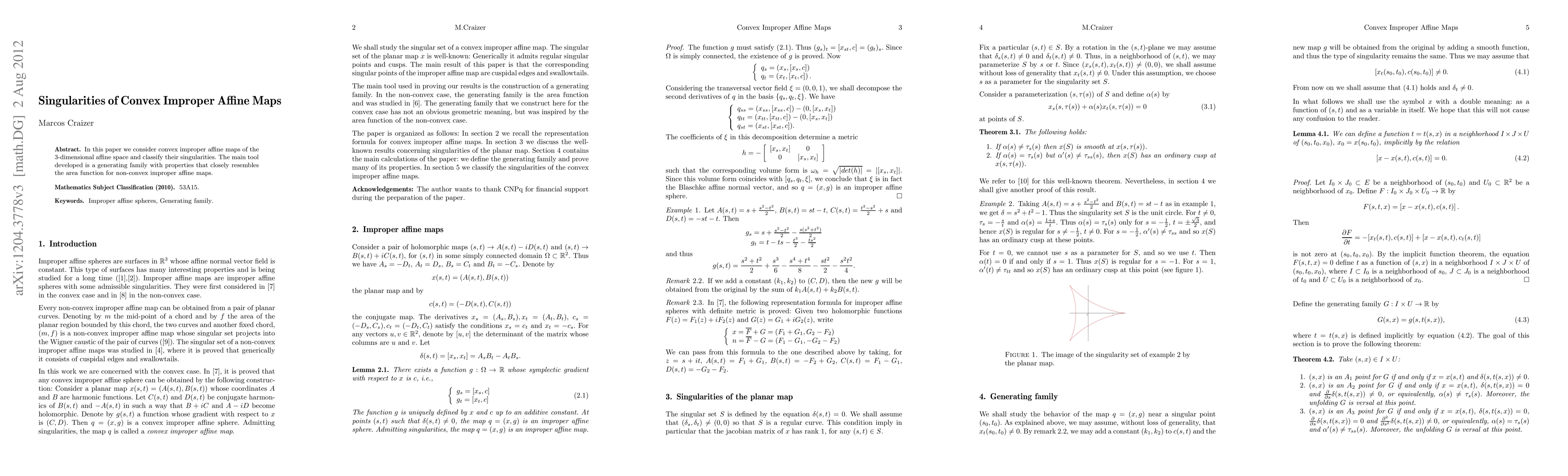In this paper we consider convex improper affine maps of the 3-dimensional affine space and classify their singularities. The main tool developed is a generating family with properties that closely resembles the area function for non-convex improper affine maps.